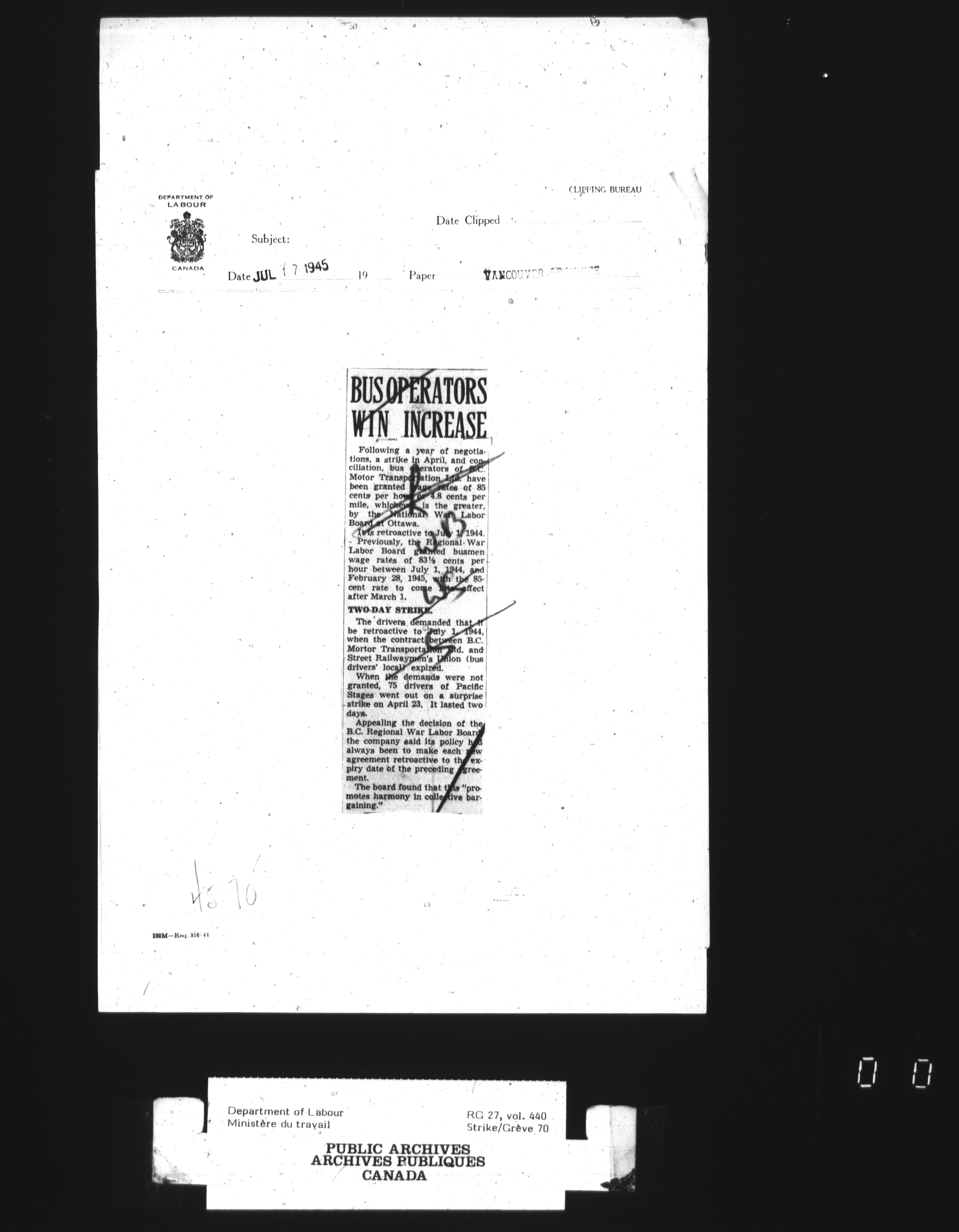 Department of Labour, Economics and Research Branch : Strikes and lockout files - 4072