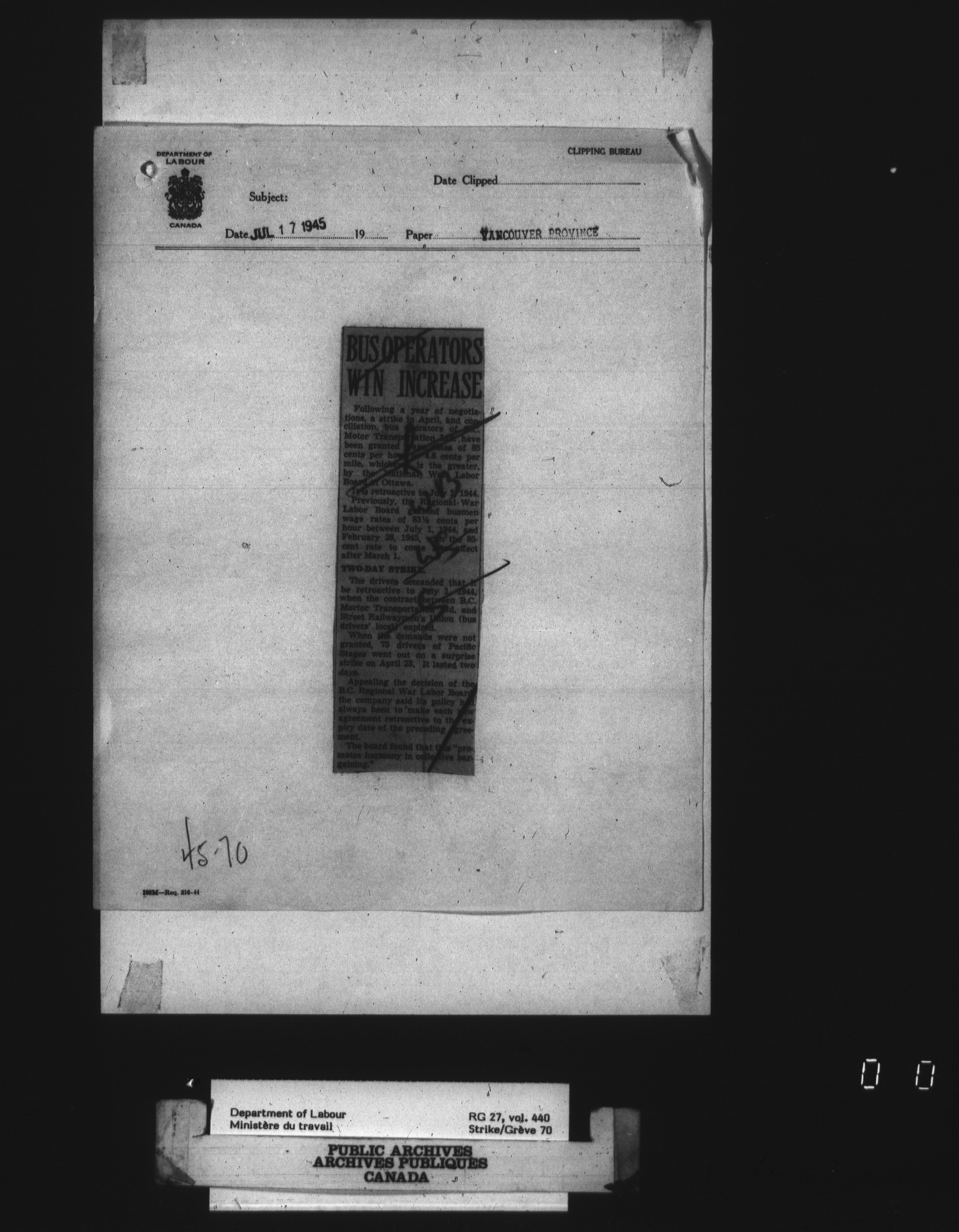 Department of Labour, Economics and Research Branch : Strikes and lockout files - 4072
