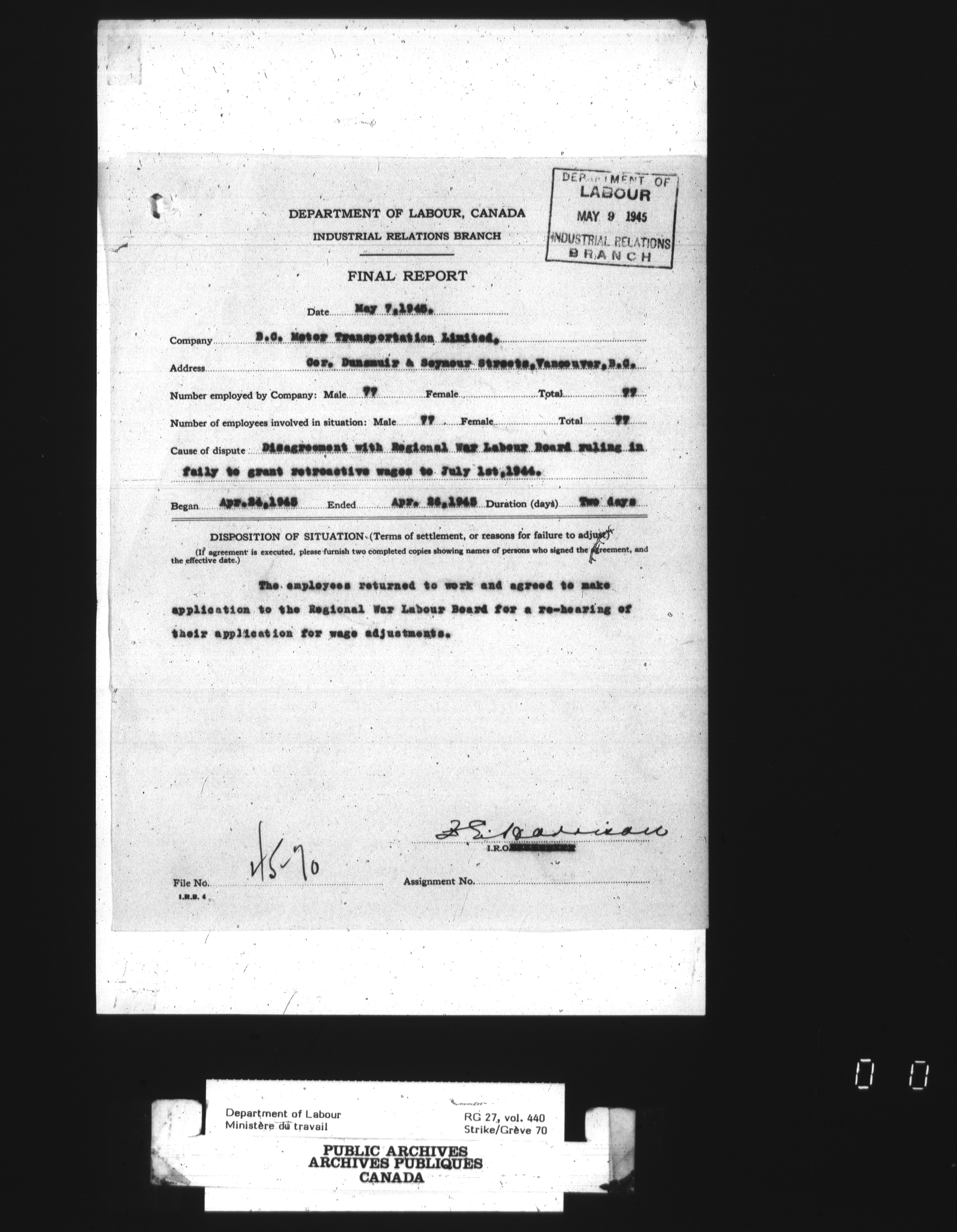Department of Labour, Economics and Research Branch : Strikes and lockout files - 4072