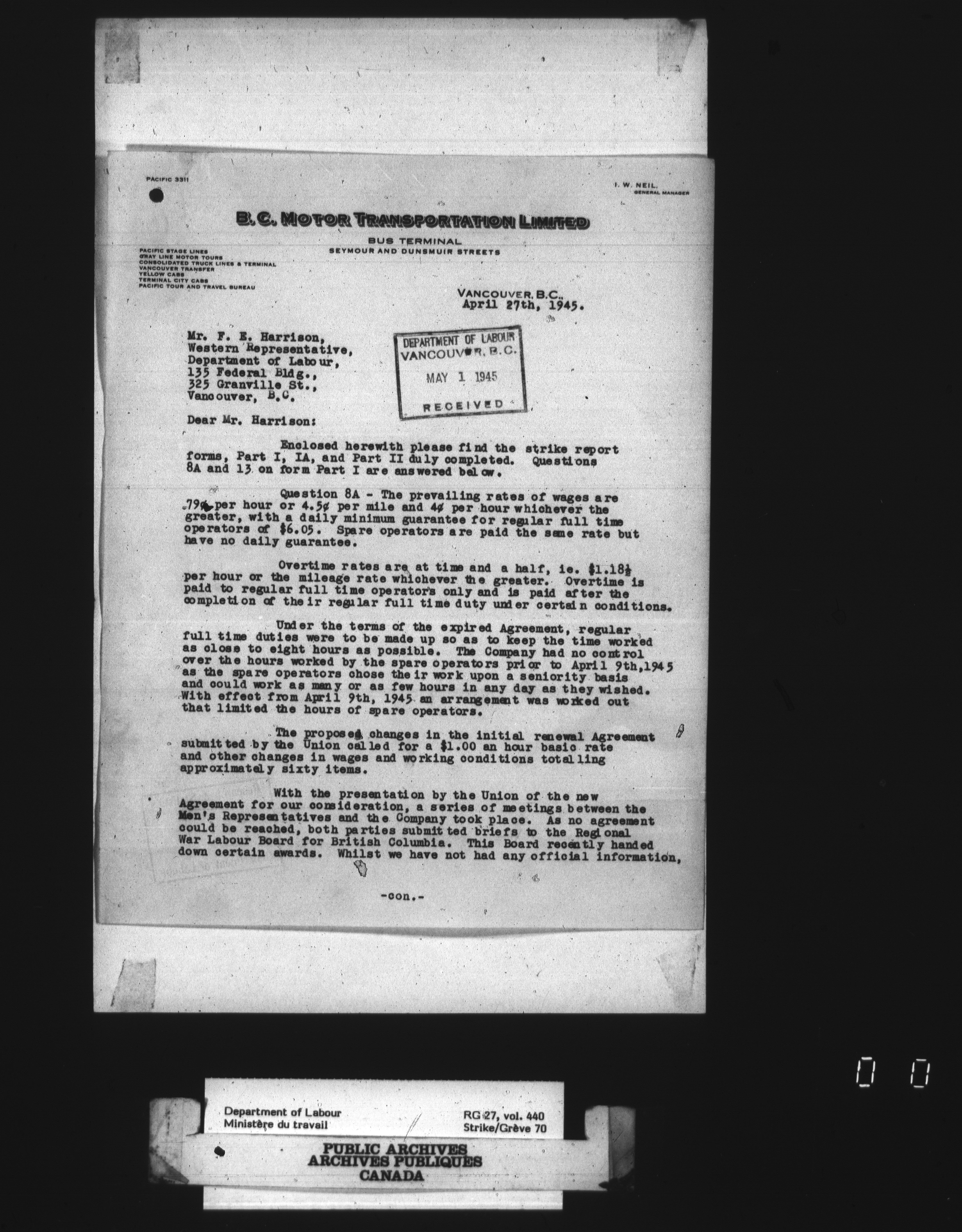 Department of Labour, Economics and Research Branch : Strikes and lockout files - 4072