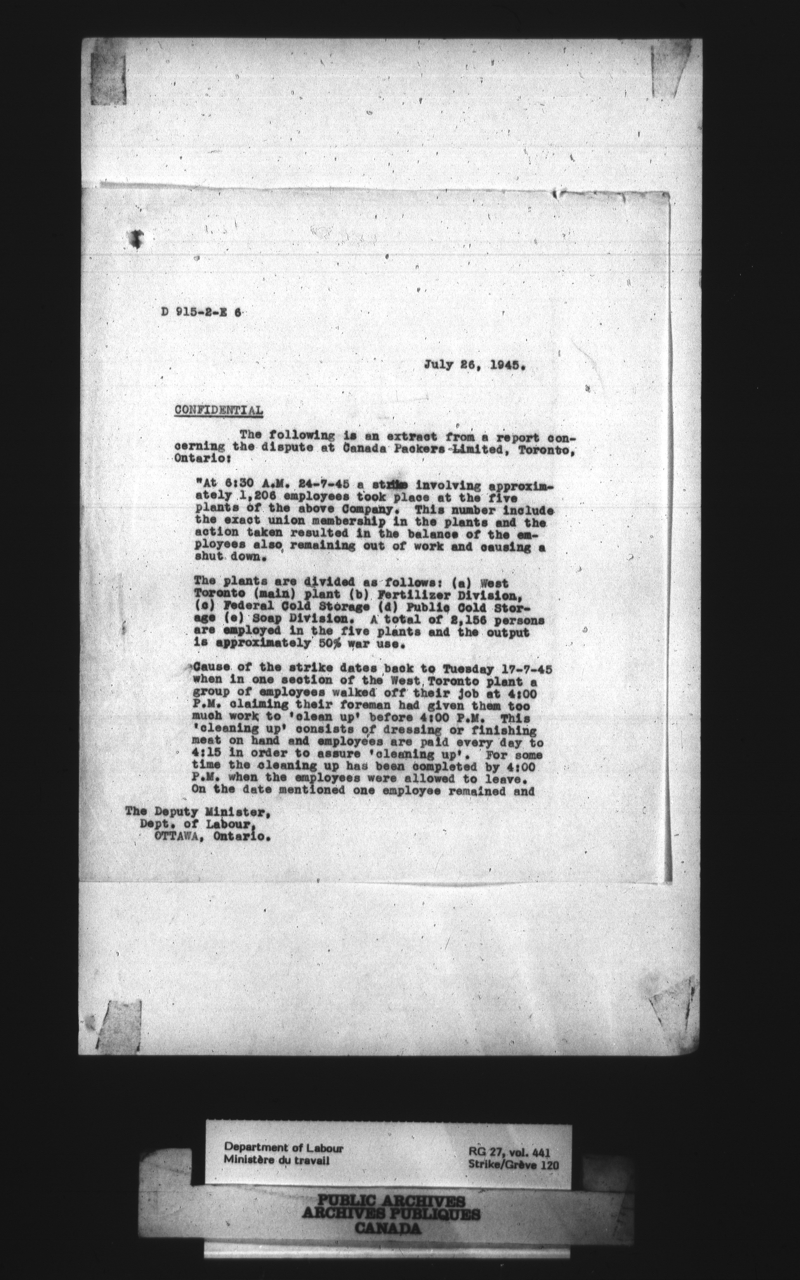 Department of Labour, Economics and Research Branch : Strikes and lockout files - 4073