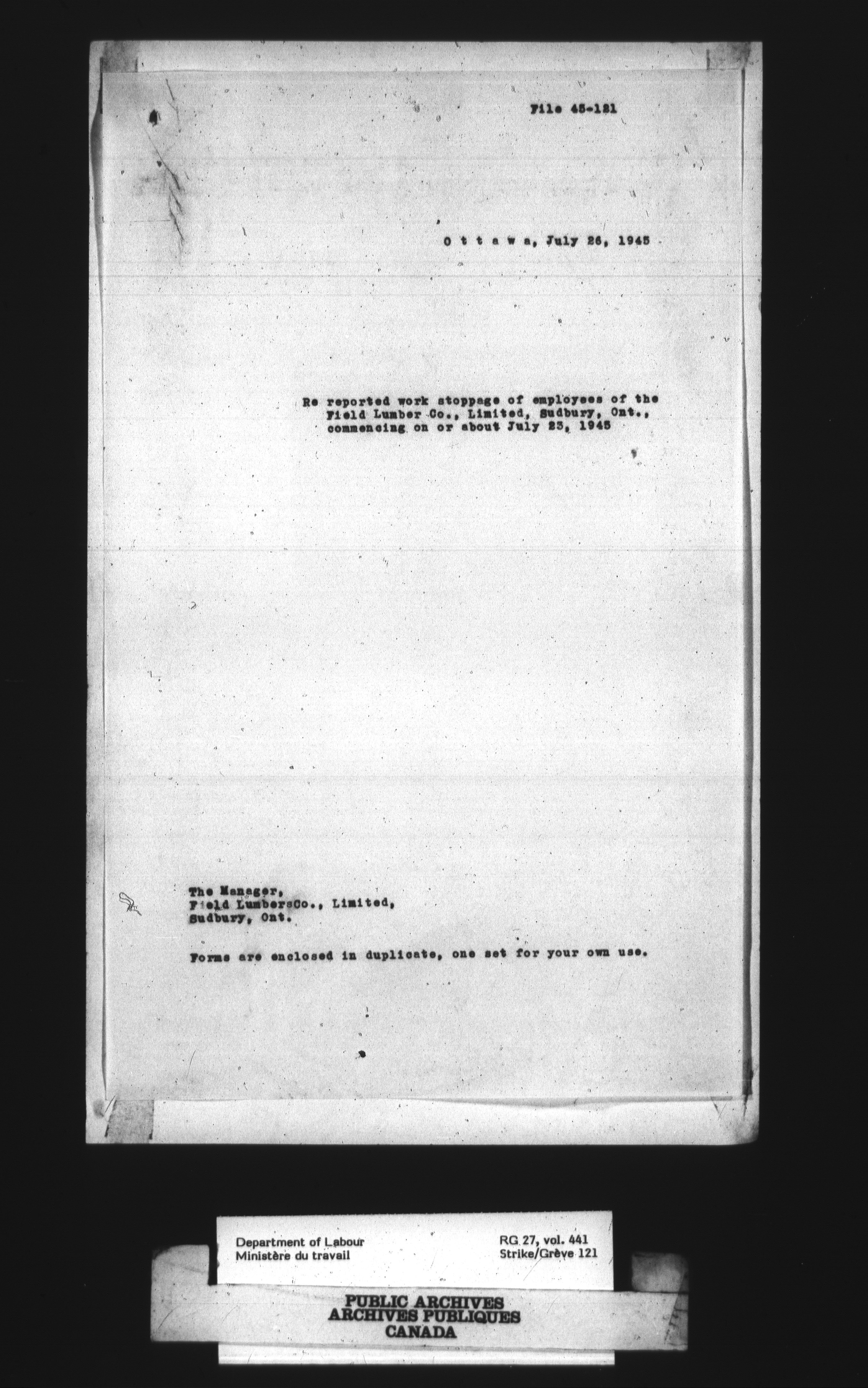 Department of Labour, Economics and Research Branch : Strikes and lockout files : T-4073
