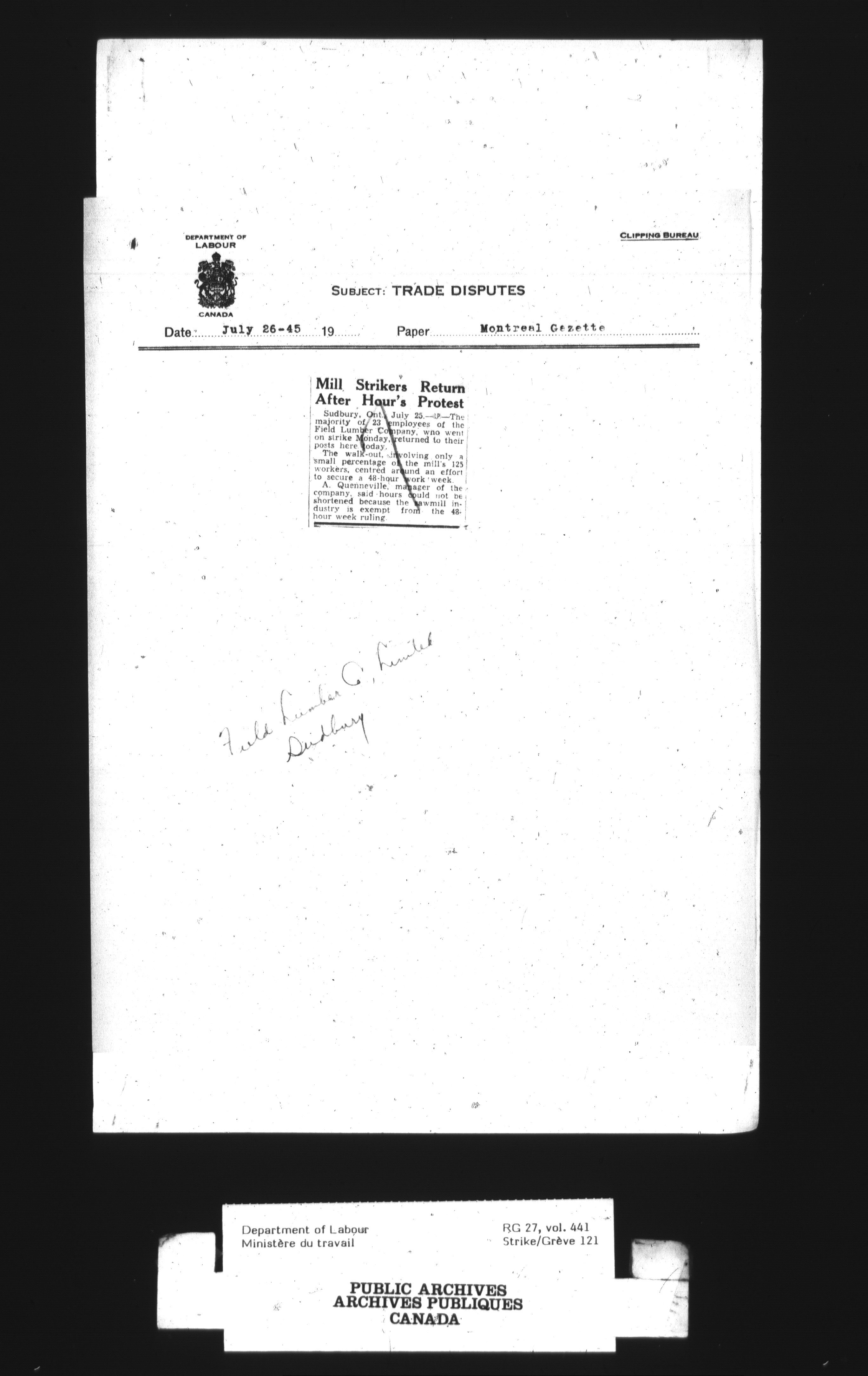 Department of Labour, Economics and Research Branch : Strikes and lockout files - 4073