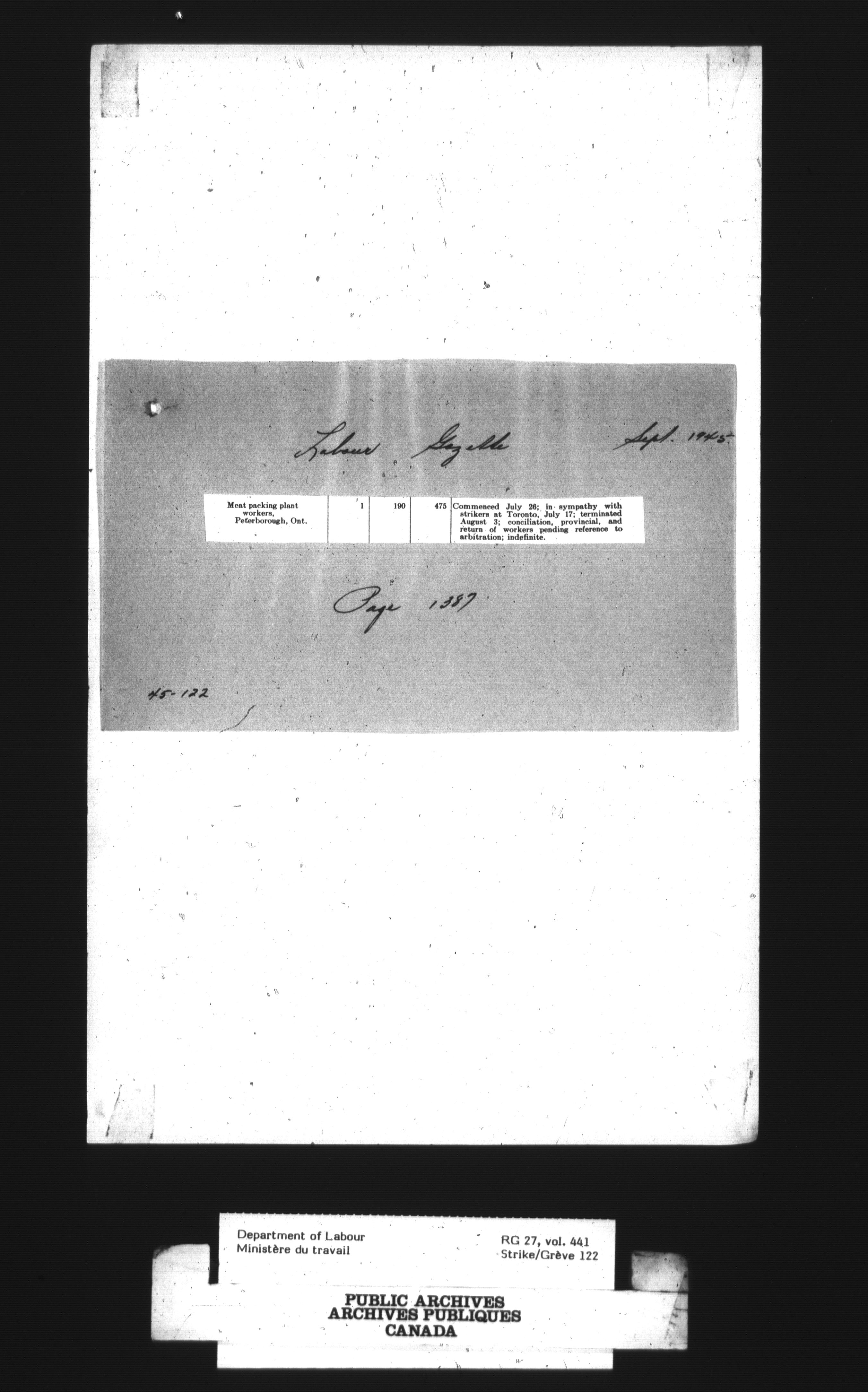 Department of Labour, Economics and Research Branch : Strikes and lockout files - 4073