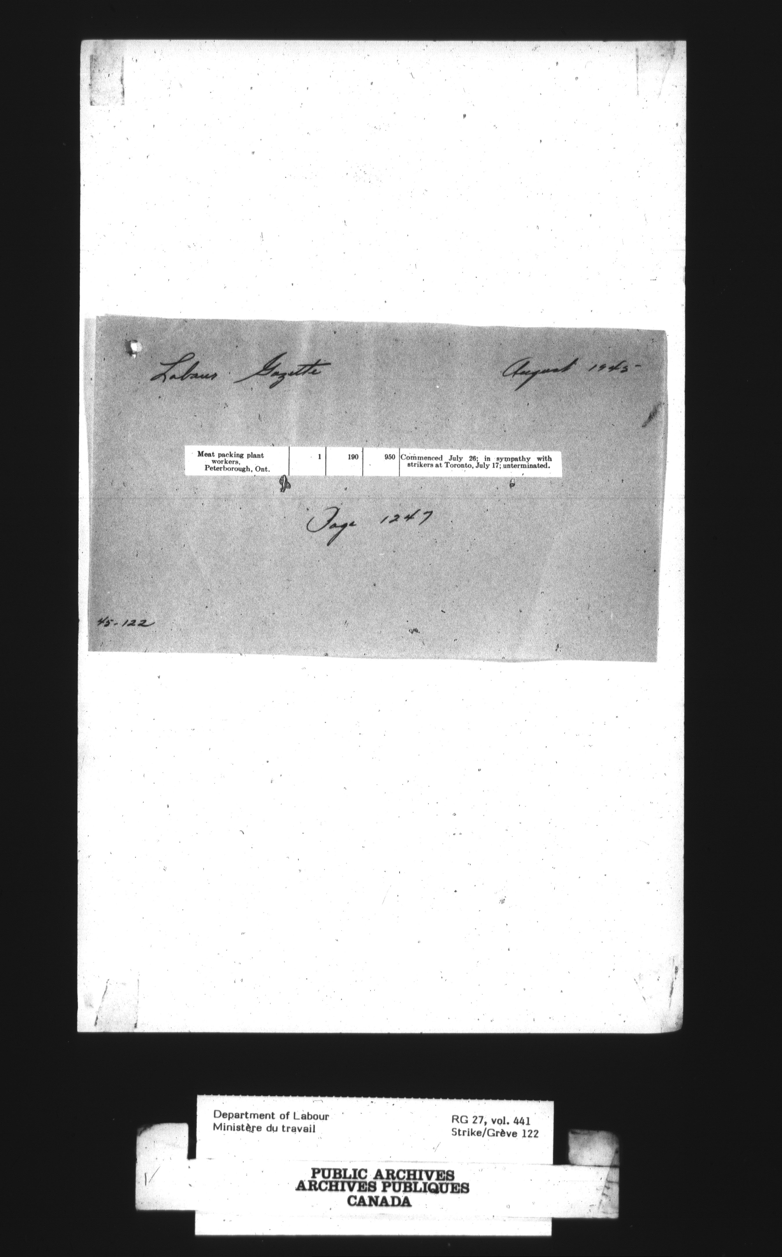 Department of Labour, Economics and Research Branch : Strikes and lockout files : T-4073