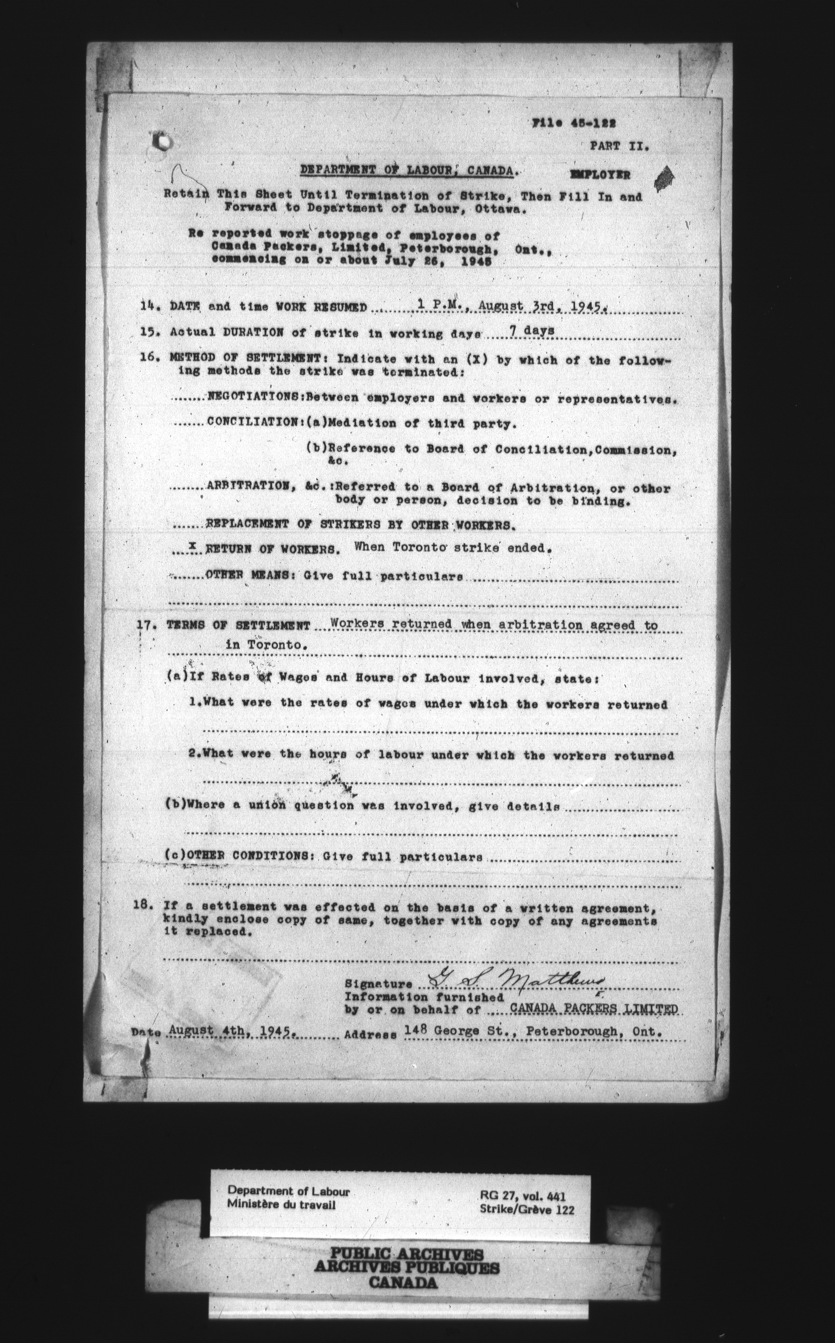 Department of Labour, Economics and Research Branch : Strikes and lockout files : T-4073