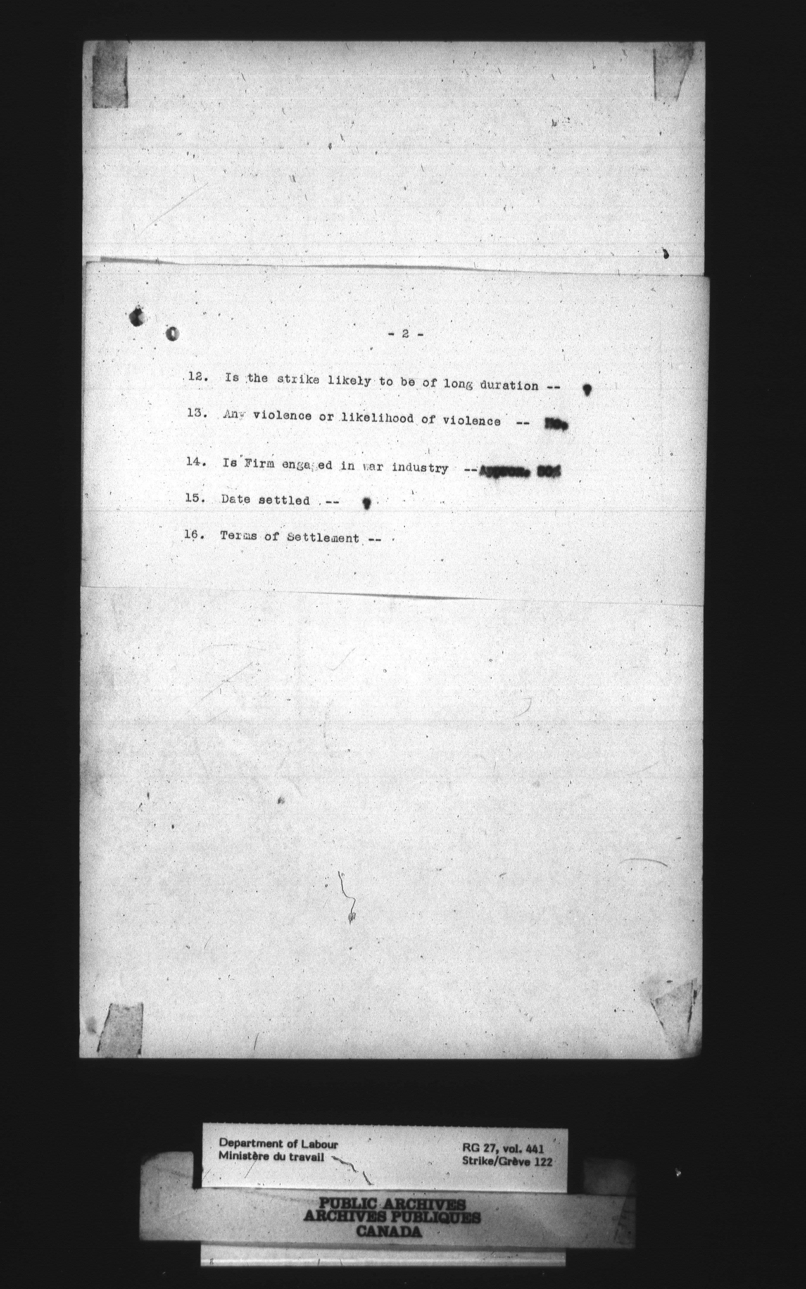 Department of Labour, Economics and Research Branch : Strikes and lockout files : T-4073