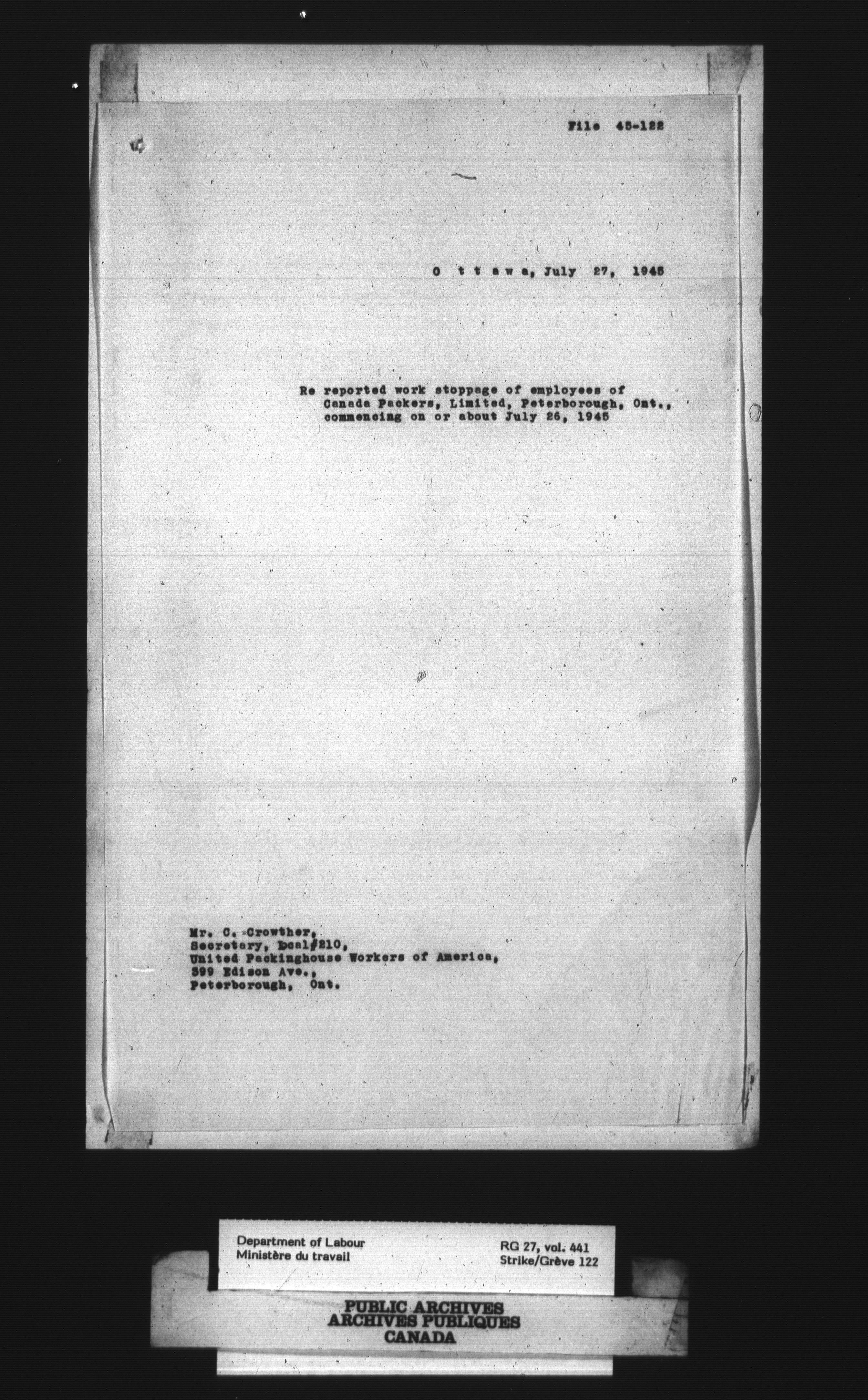 Department of Labour, Economics and Research Branch : Strikes and lockout files - 4073
