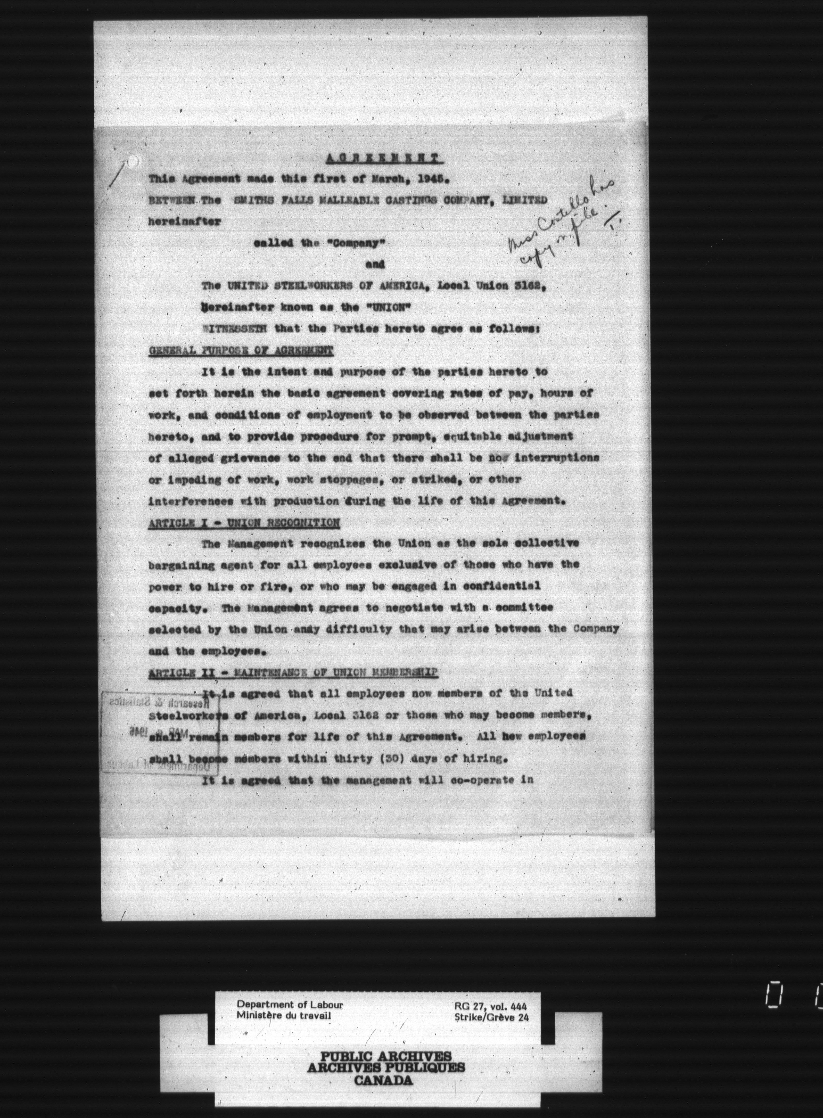 Department of Labour, Economics and Research Branch : Strikes and lockout files - 4076