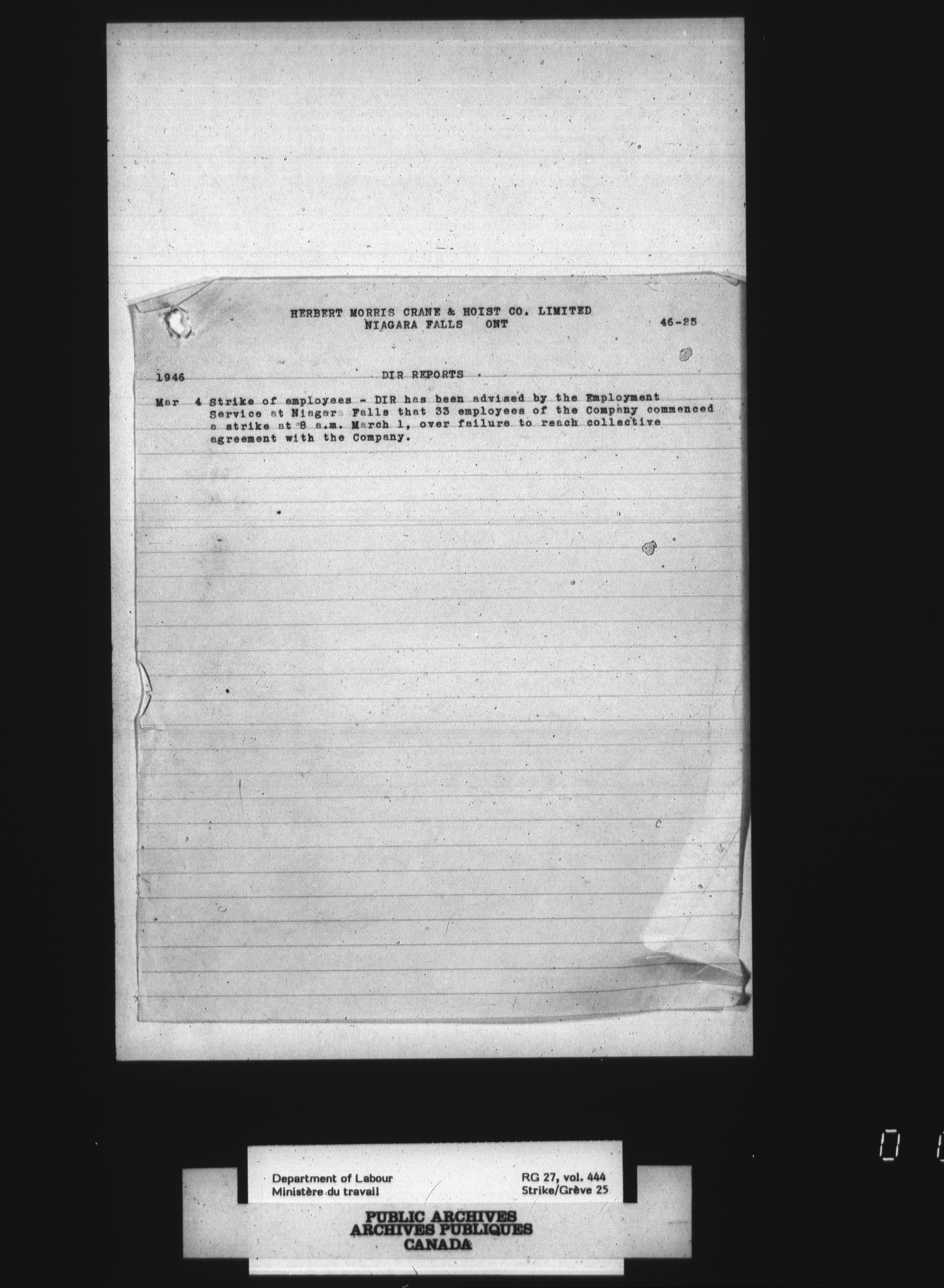 Department of Labour, Economics and Research Branch : Strikes and lockout files - 4076
