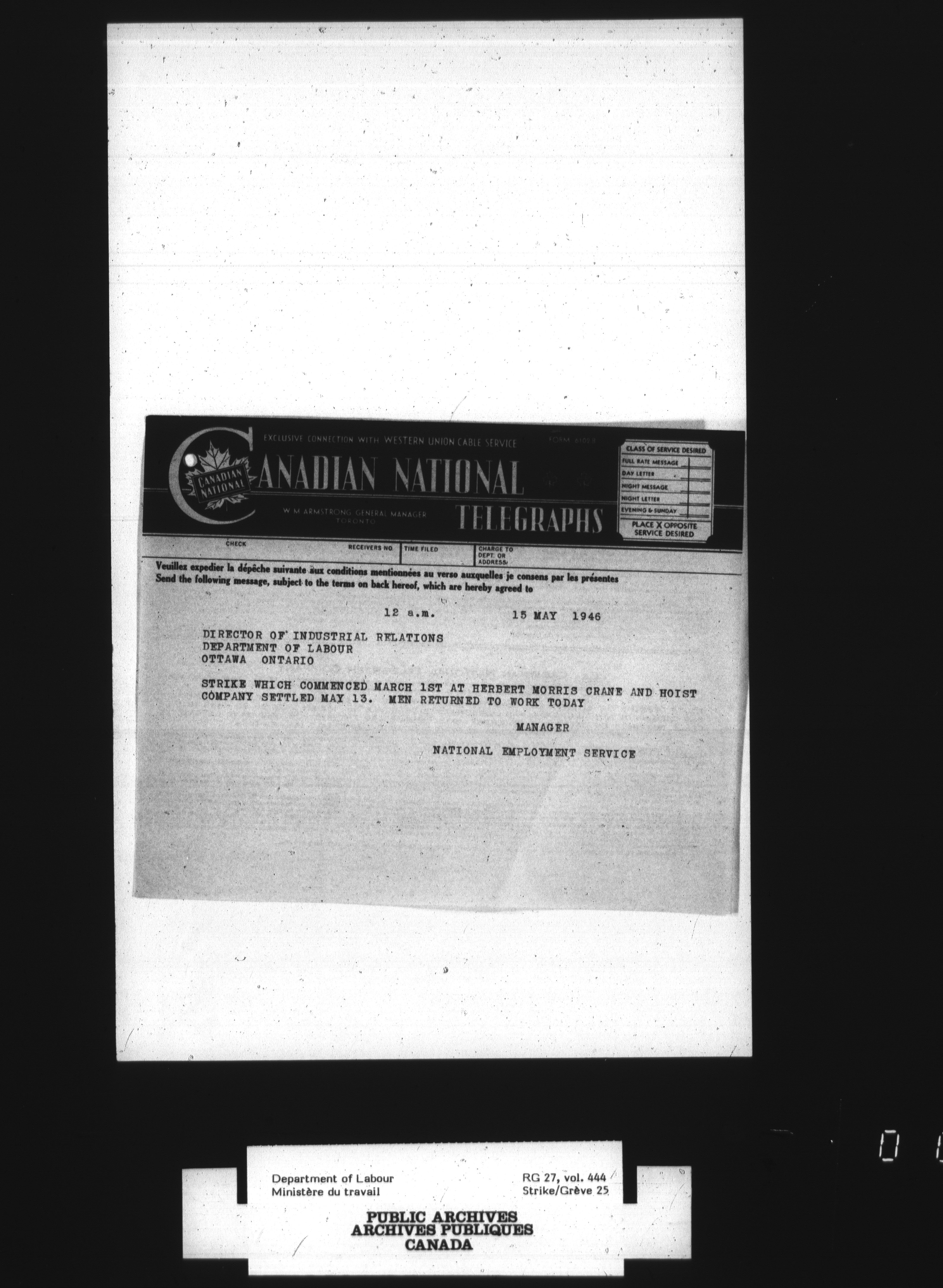 Department of Labour, Economics and Research Branch : Strikes and lockout files - 4076