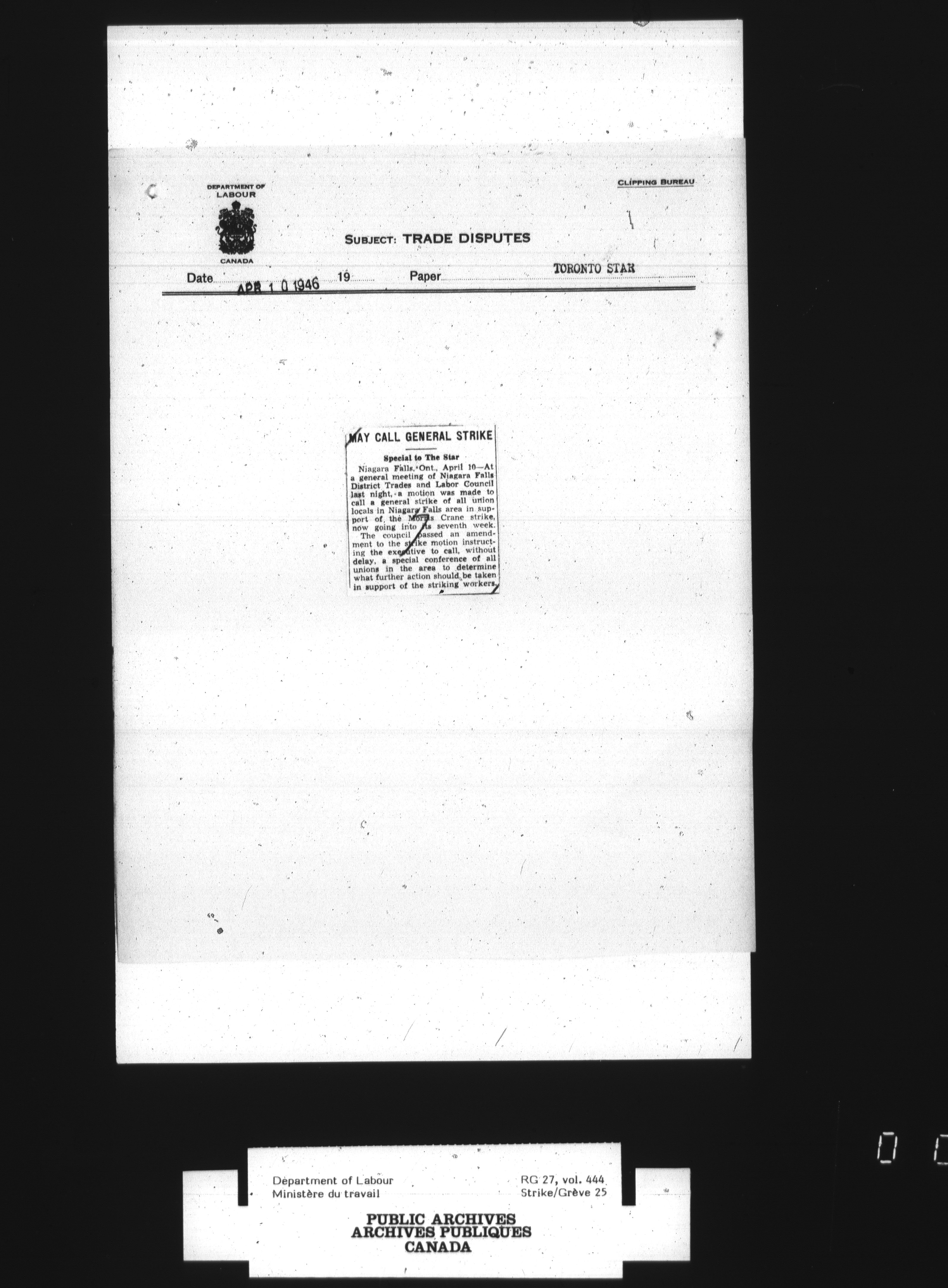 Department of Labour, Economics and Research Branch : Strikes and lockout files - 4076