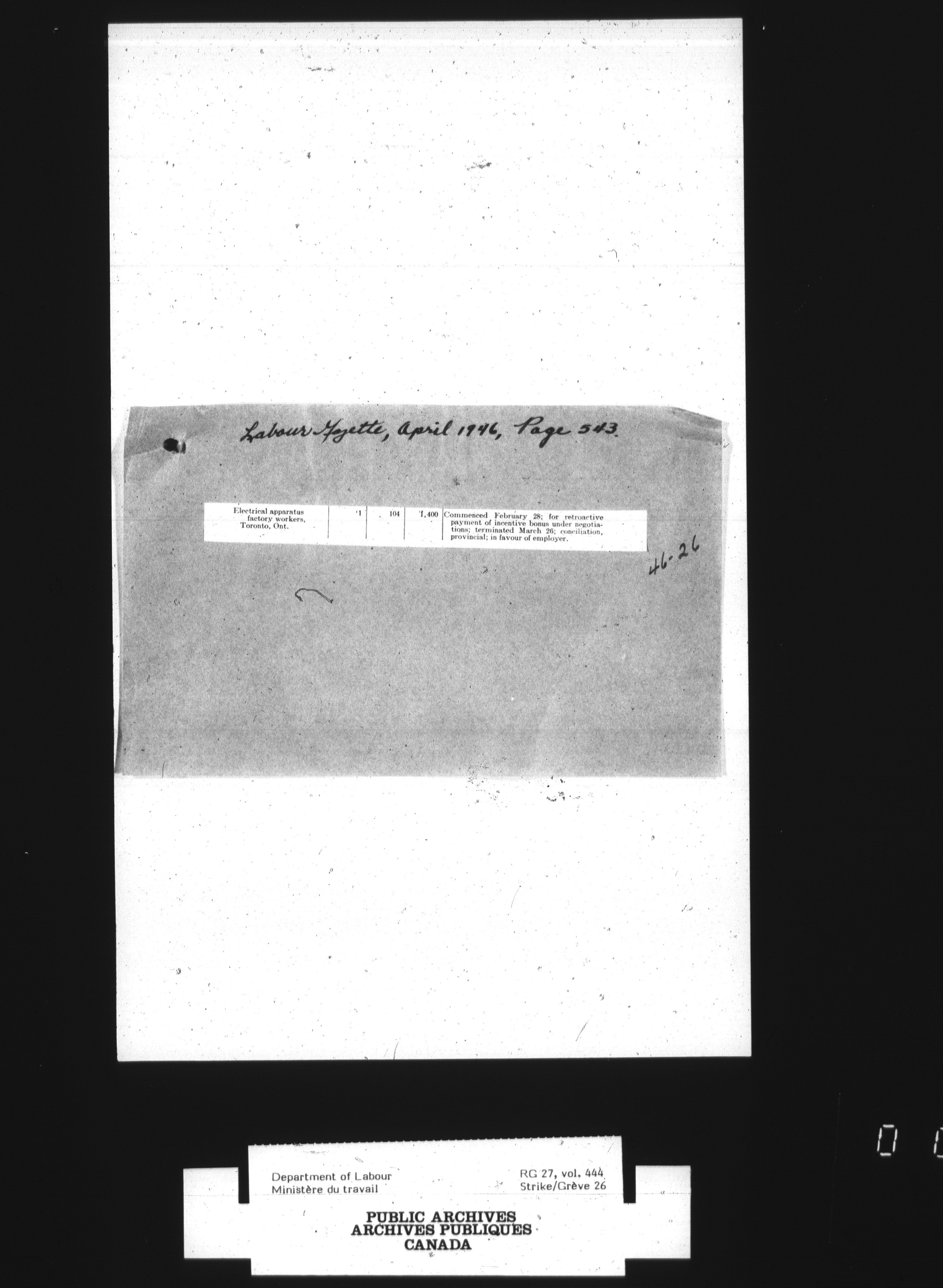 Department of Labour, Economics and Research Branch : Strikes and lockout files - 4076