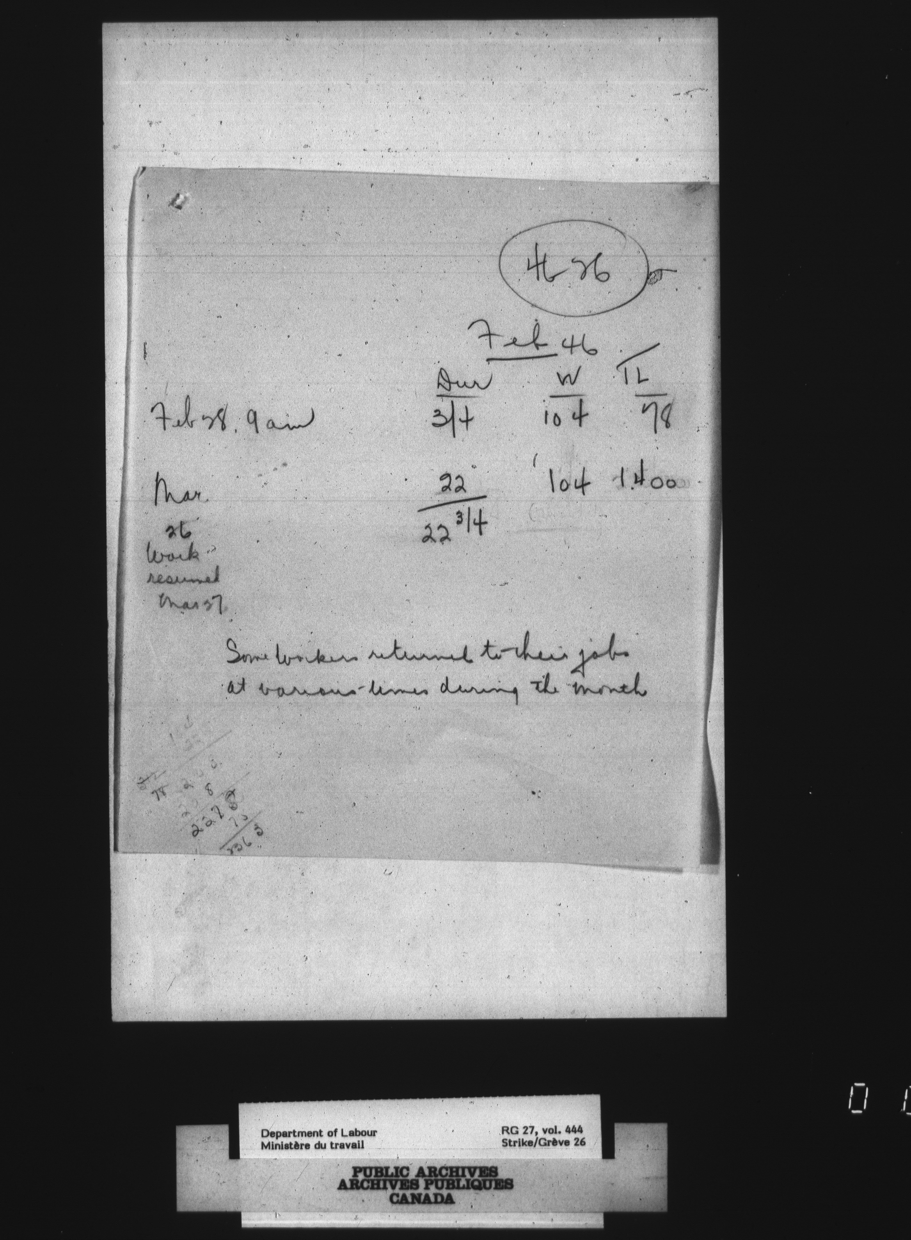 Department of Labour, Economics and Research Branch : Strikes and lockout files - 4076