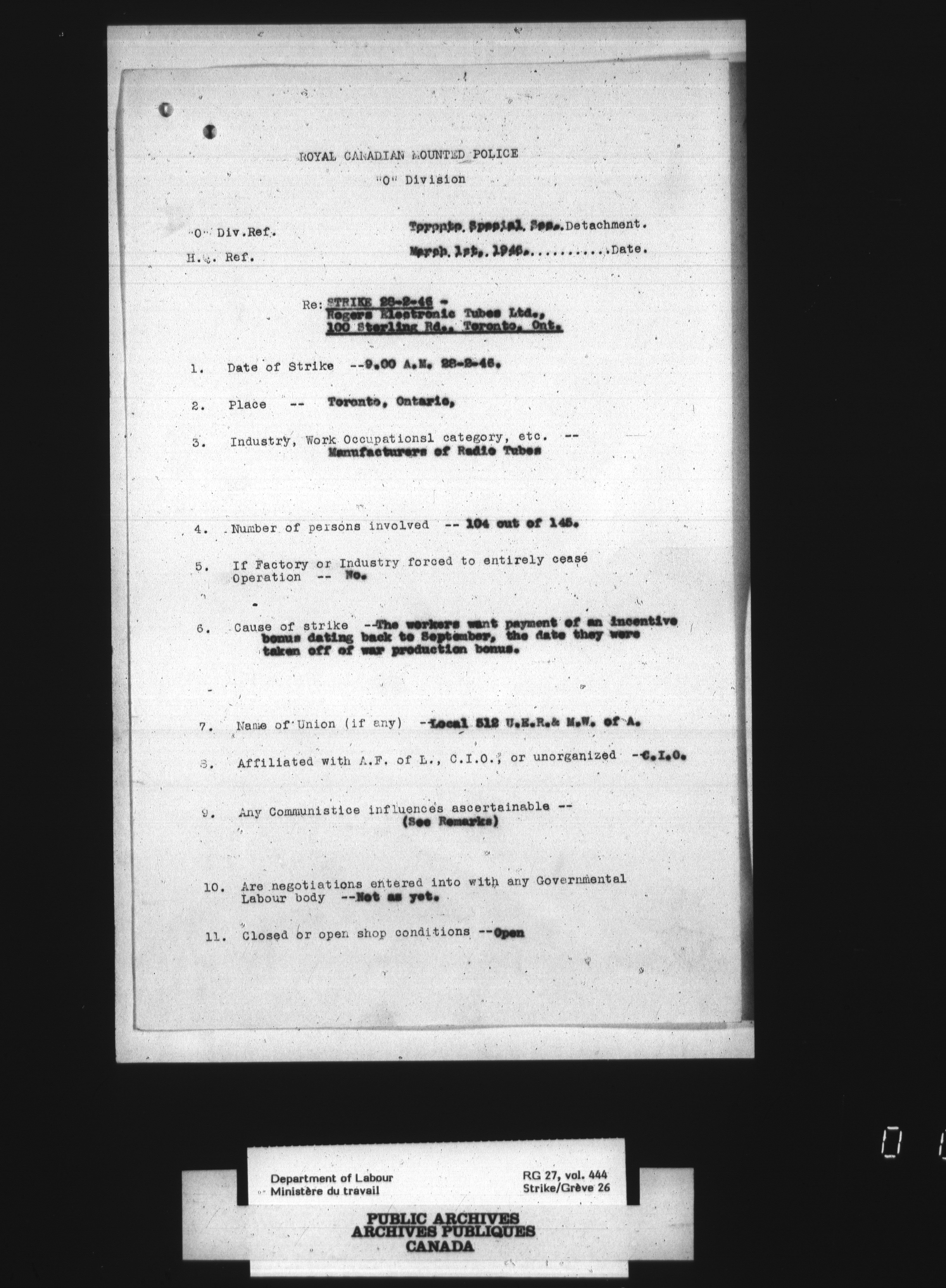 Department of Labour, Economics and Research Branch : Strikes and lockout files - 4076