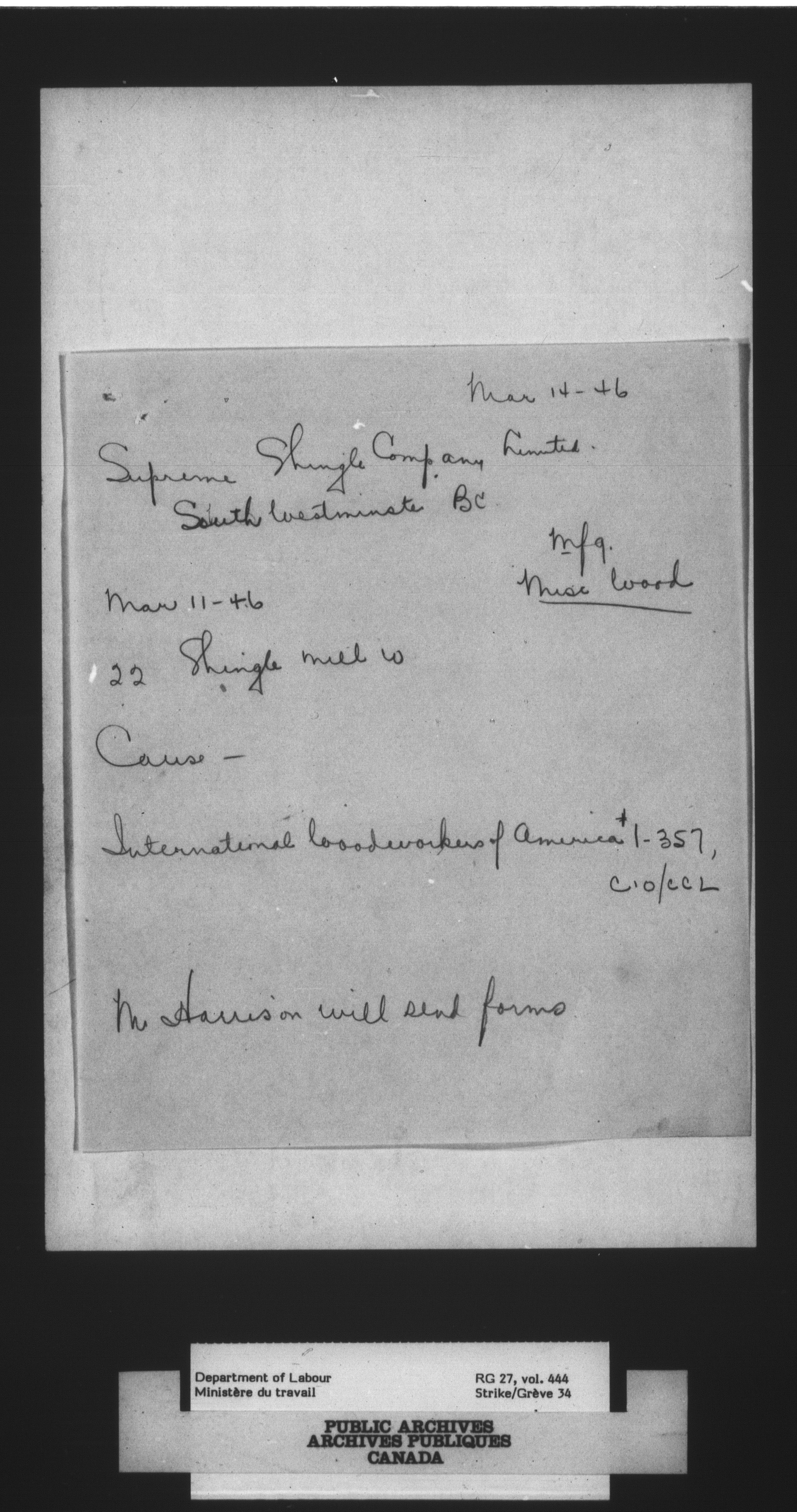 Department of Labour, Economics and Research Branch : Strikes and lockout files - 4077