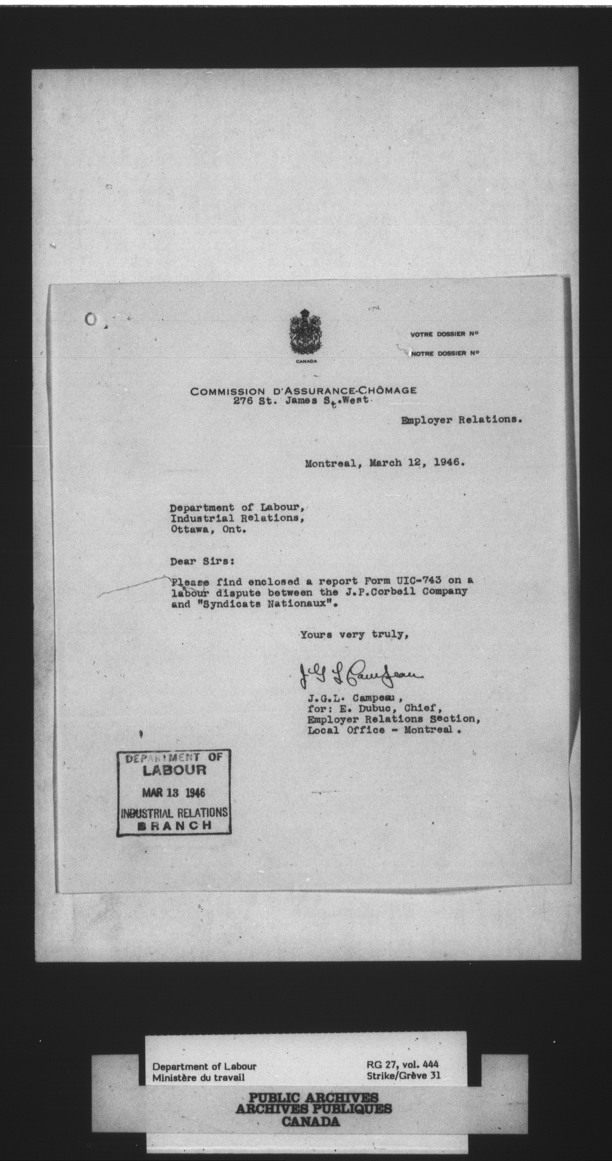 Department of Labour, Economics and Research Branch : Strikes and lockout files - 4077
