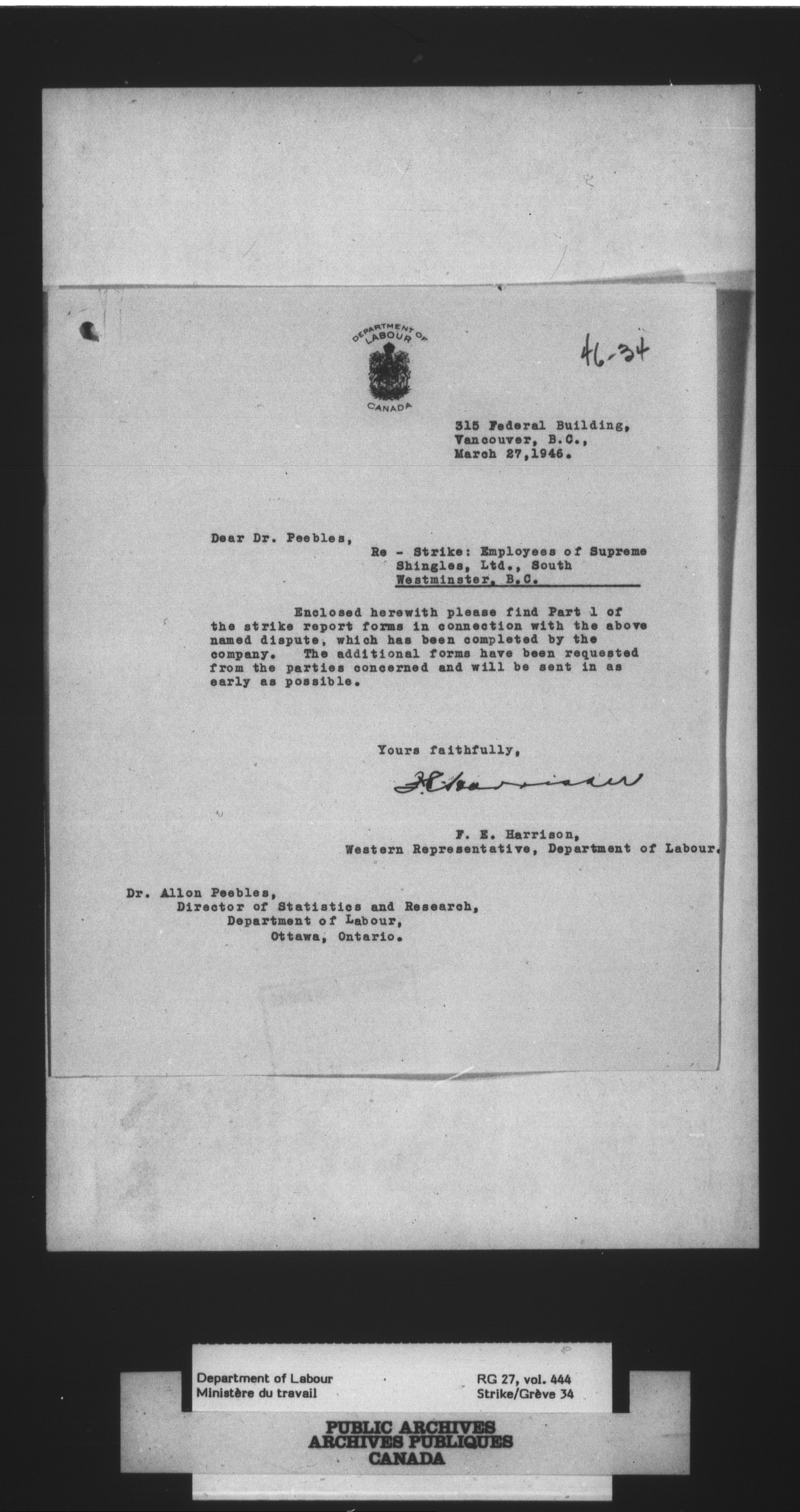 Department of Labour, Economics and Research Branch : Strikes and lockout files - 4077