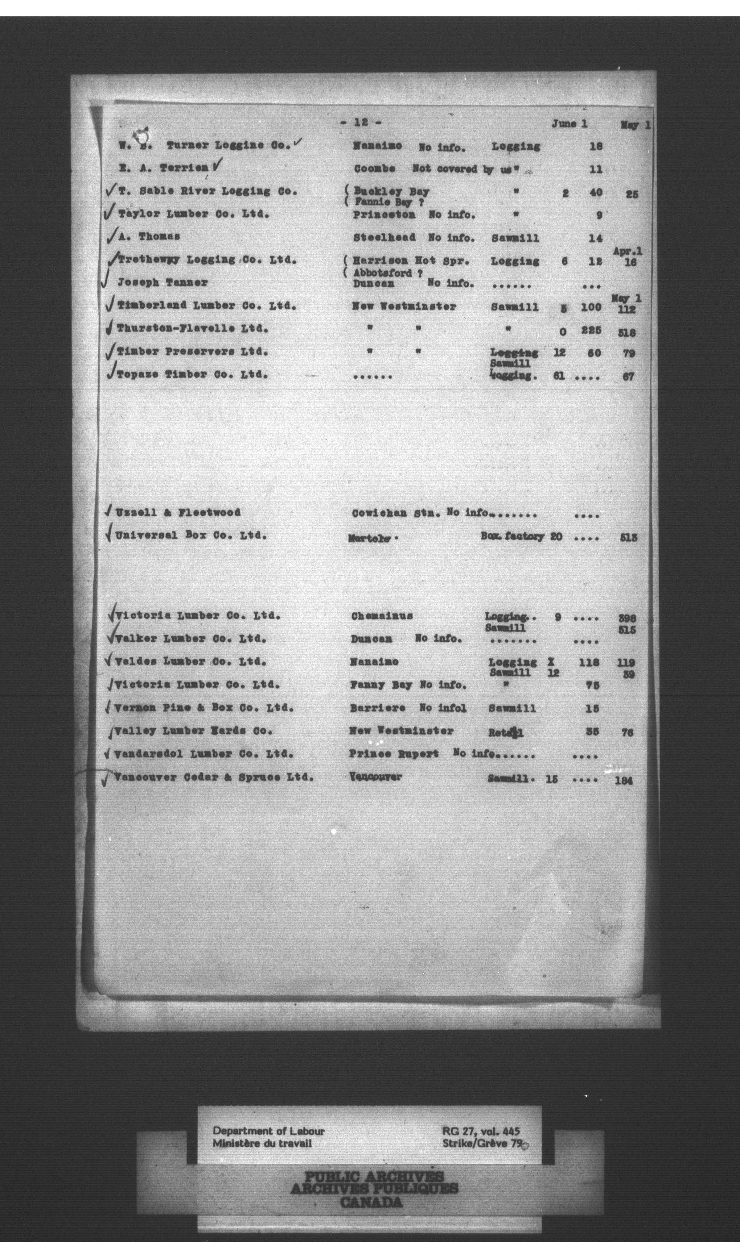 Department of Labour, Economics and Research Branch : Strikes and lockout files : T-4078