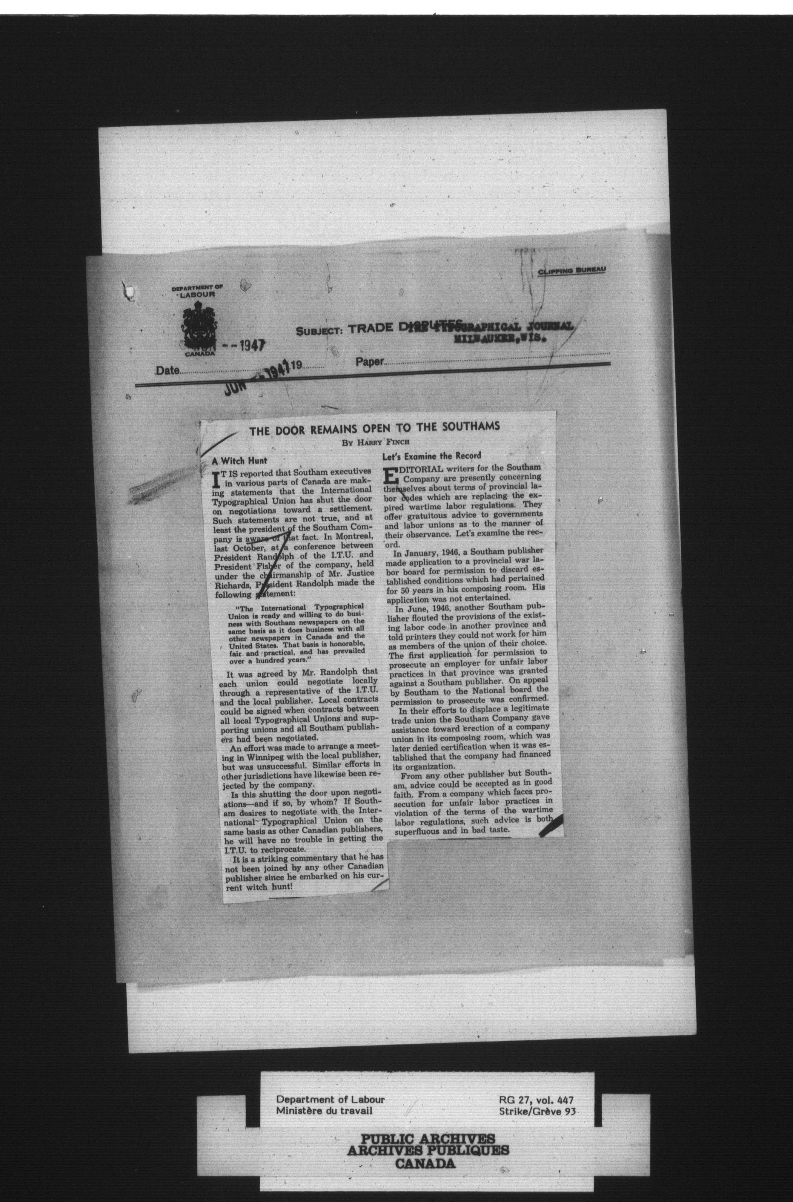 Department of Labour, Economics and Research Branch : Strikes and lockout files - 4079