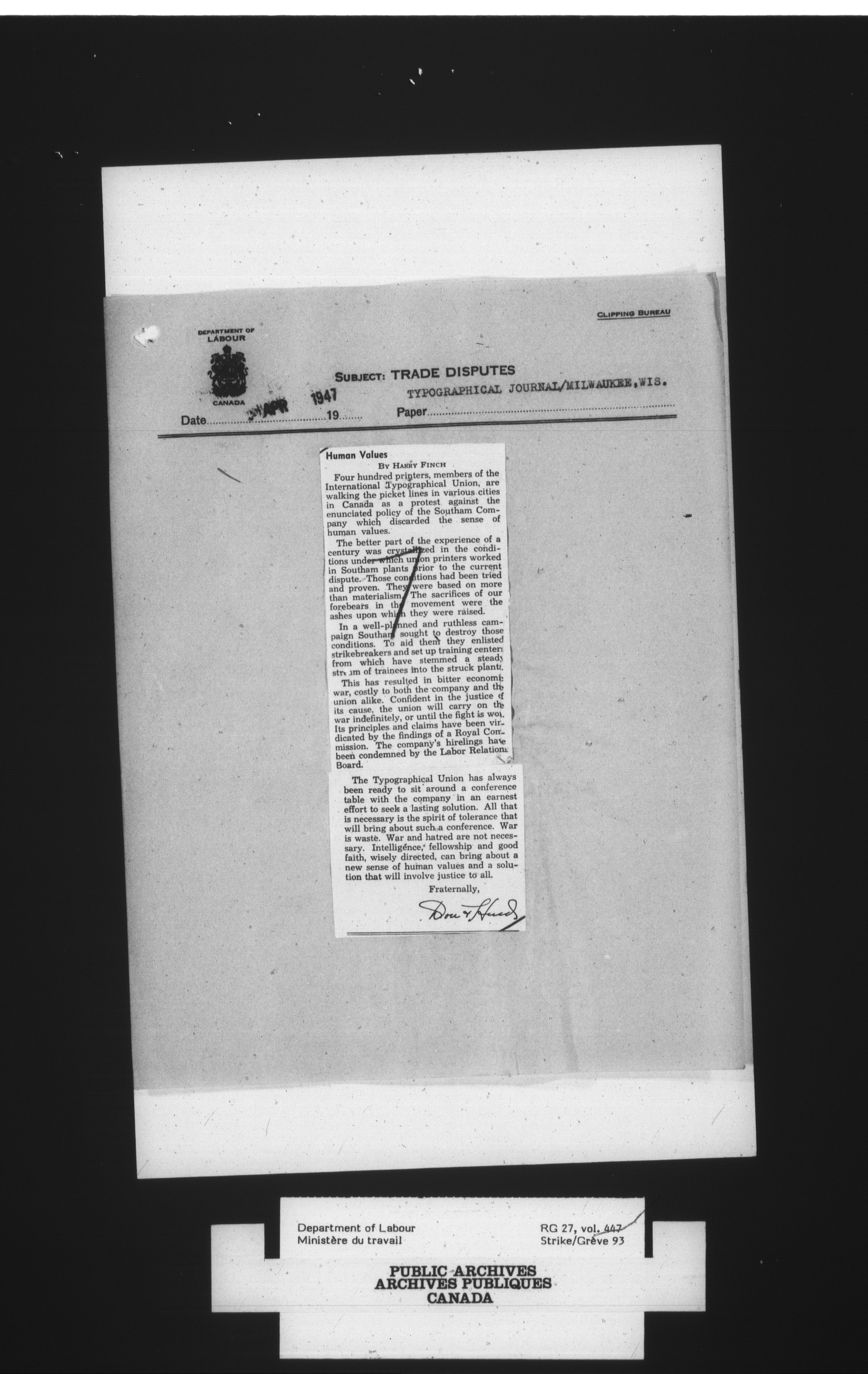 Department of Labour, Economics and Research Branch : Strikes and lockout files - 4079