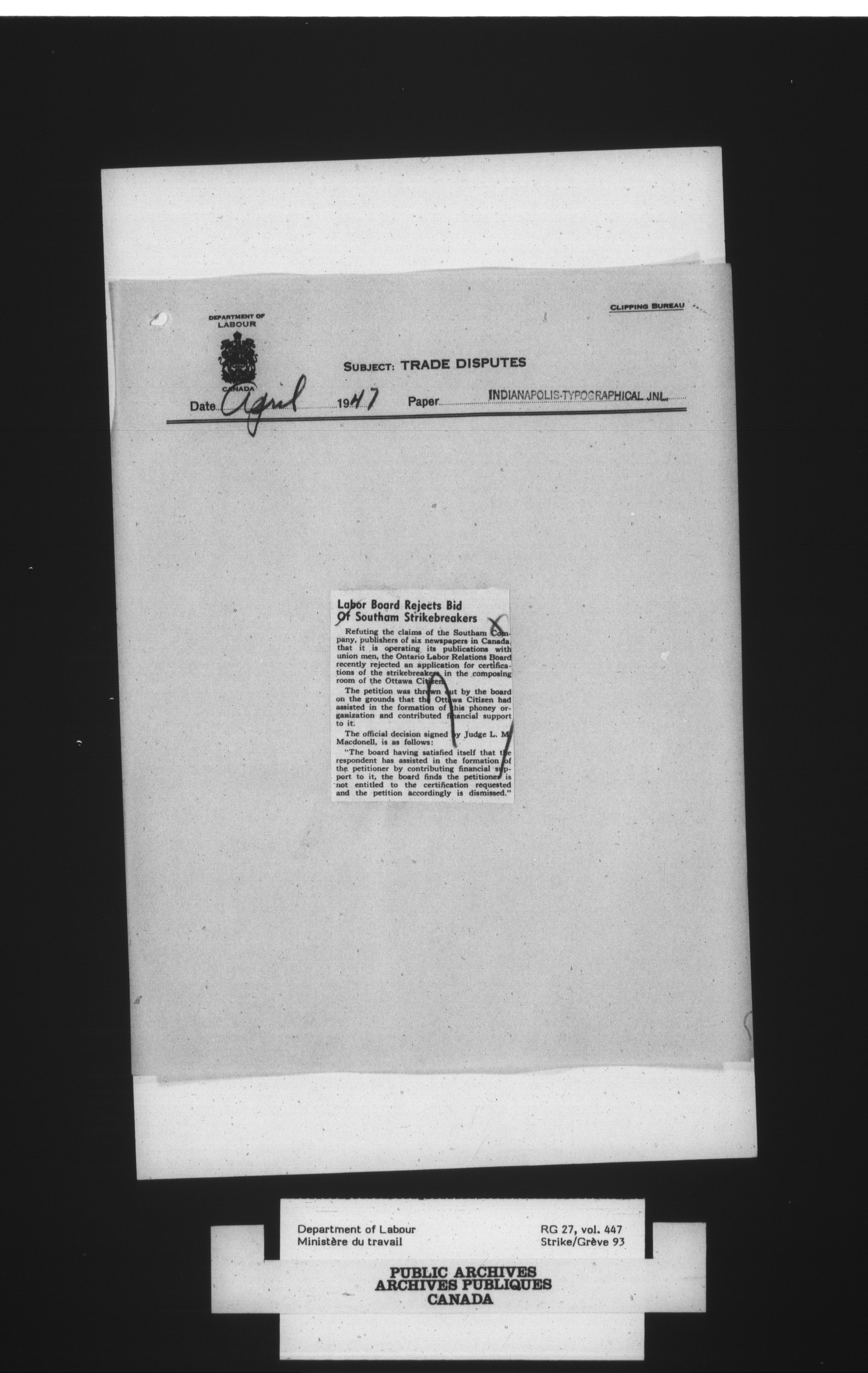 Department of Labour, Economics and Research Branch : Strikes and lockout files - 4079