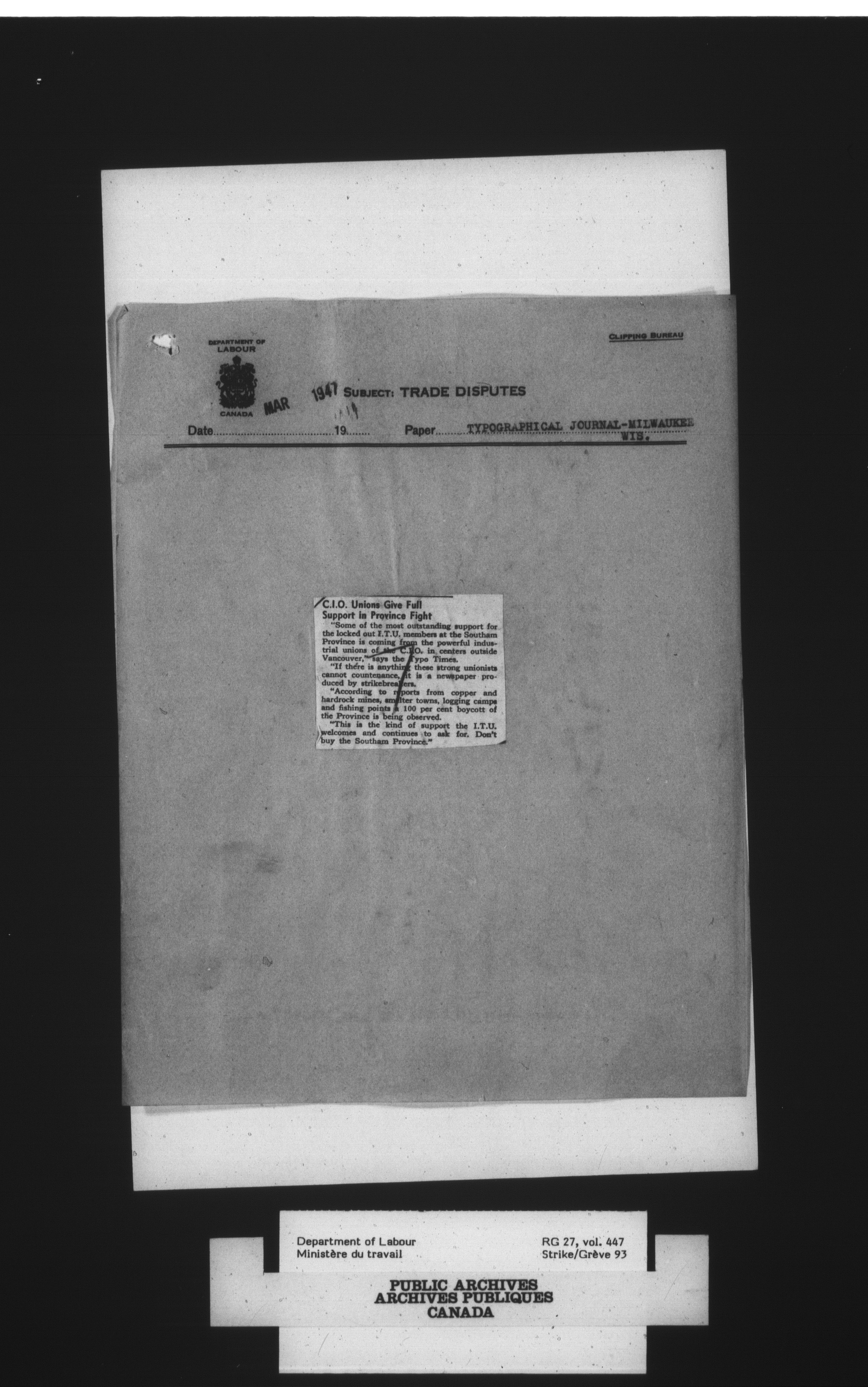 Department of Labour, Economics and Research Branch : Strikes and lockout files - 4079