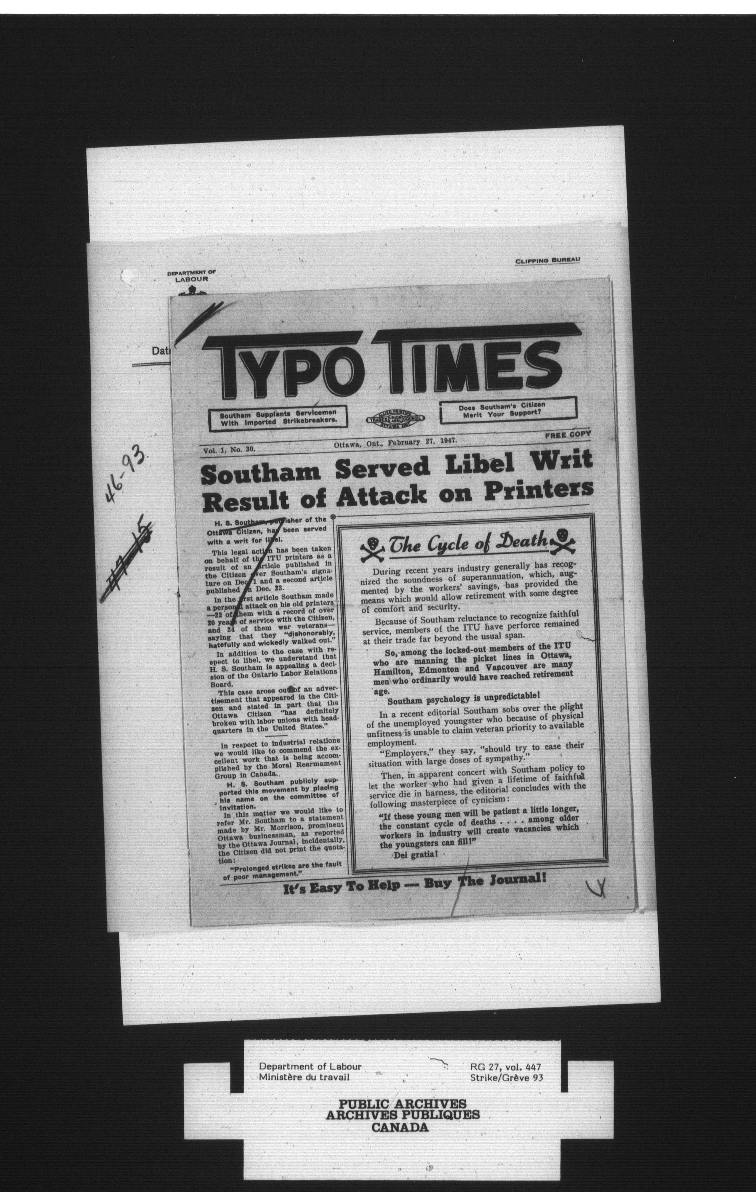 Department of Labour, Economics and Research Branch : Strikes and lockout files - 4079