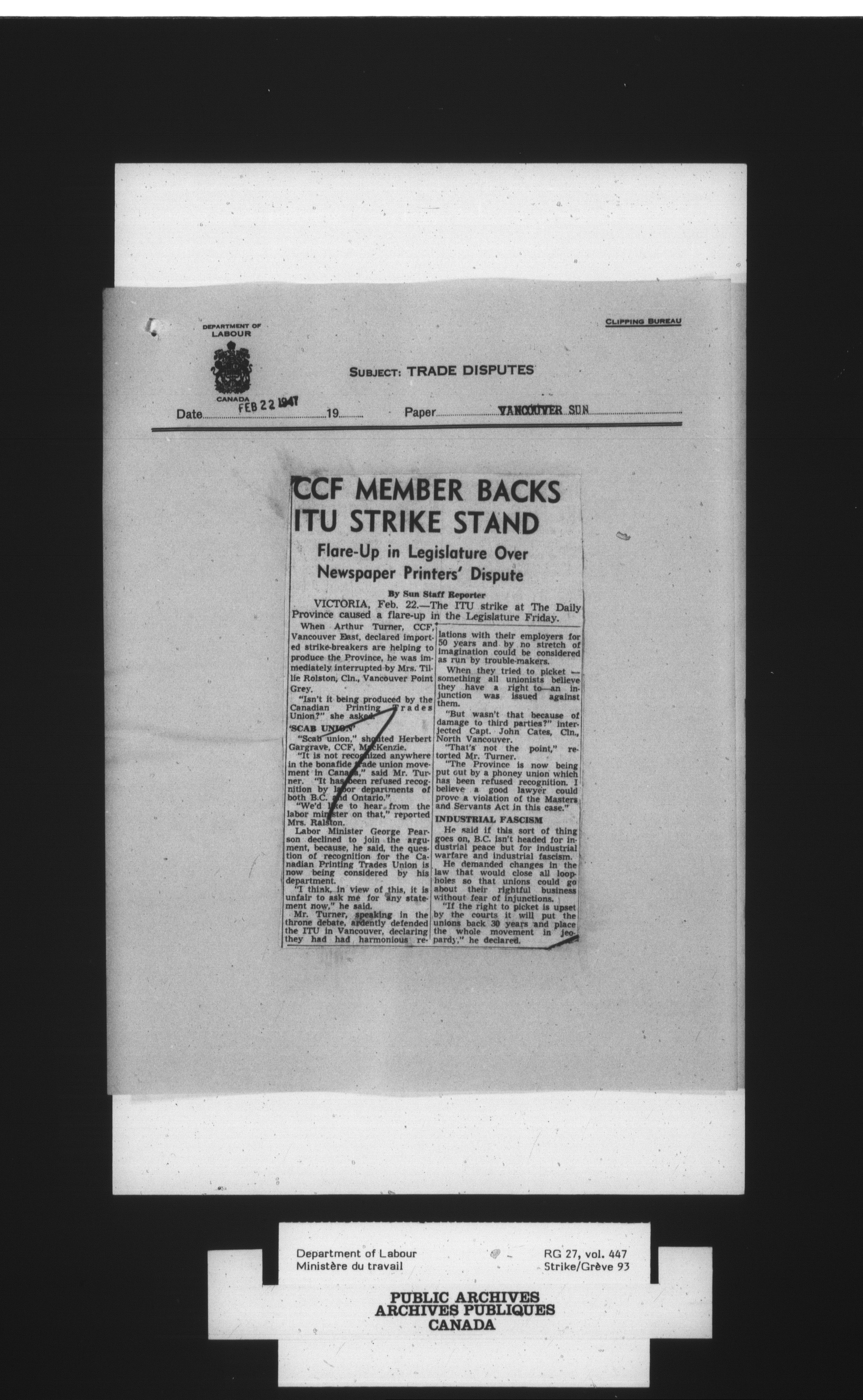 Department of Labour, Economics and Research Branch : Strikes and lockout files - 4079