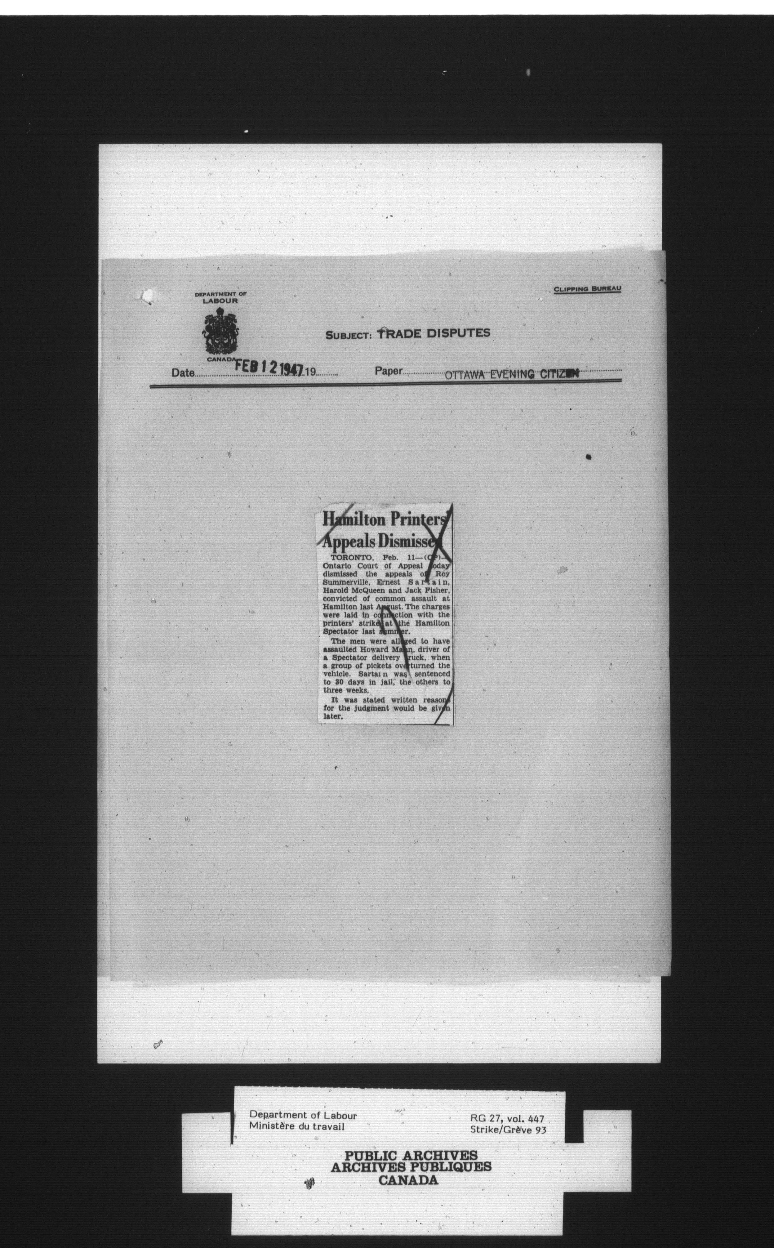 Department of Labour, Economics and Research Branch : Strikes and lockout files - 4079