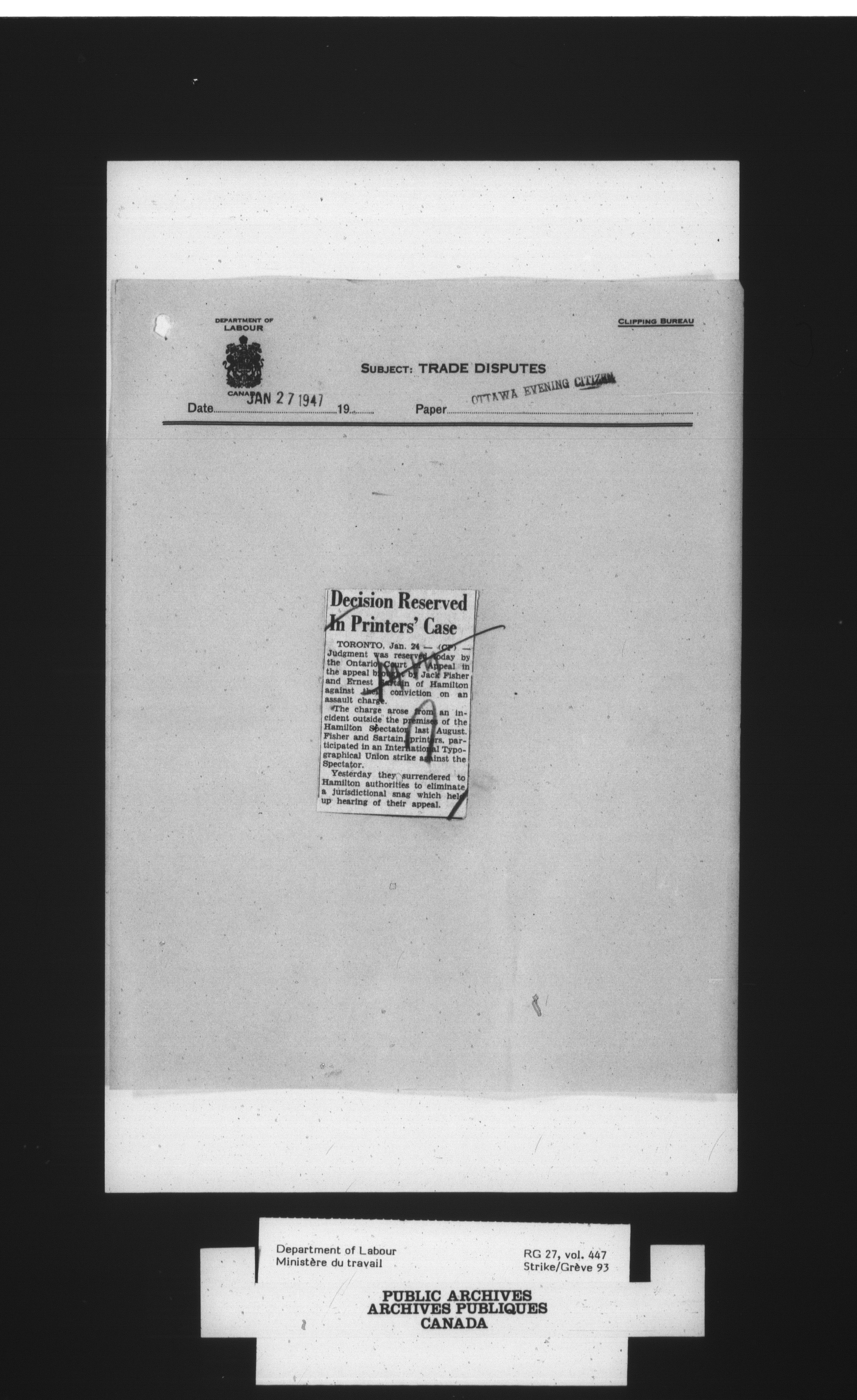 Department of Labour, Economics and Research Branch : Strikes and lockout files - 4079