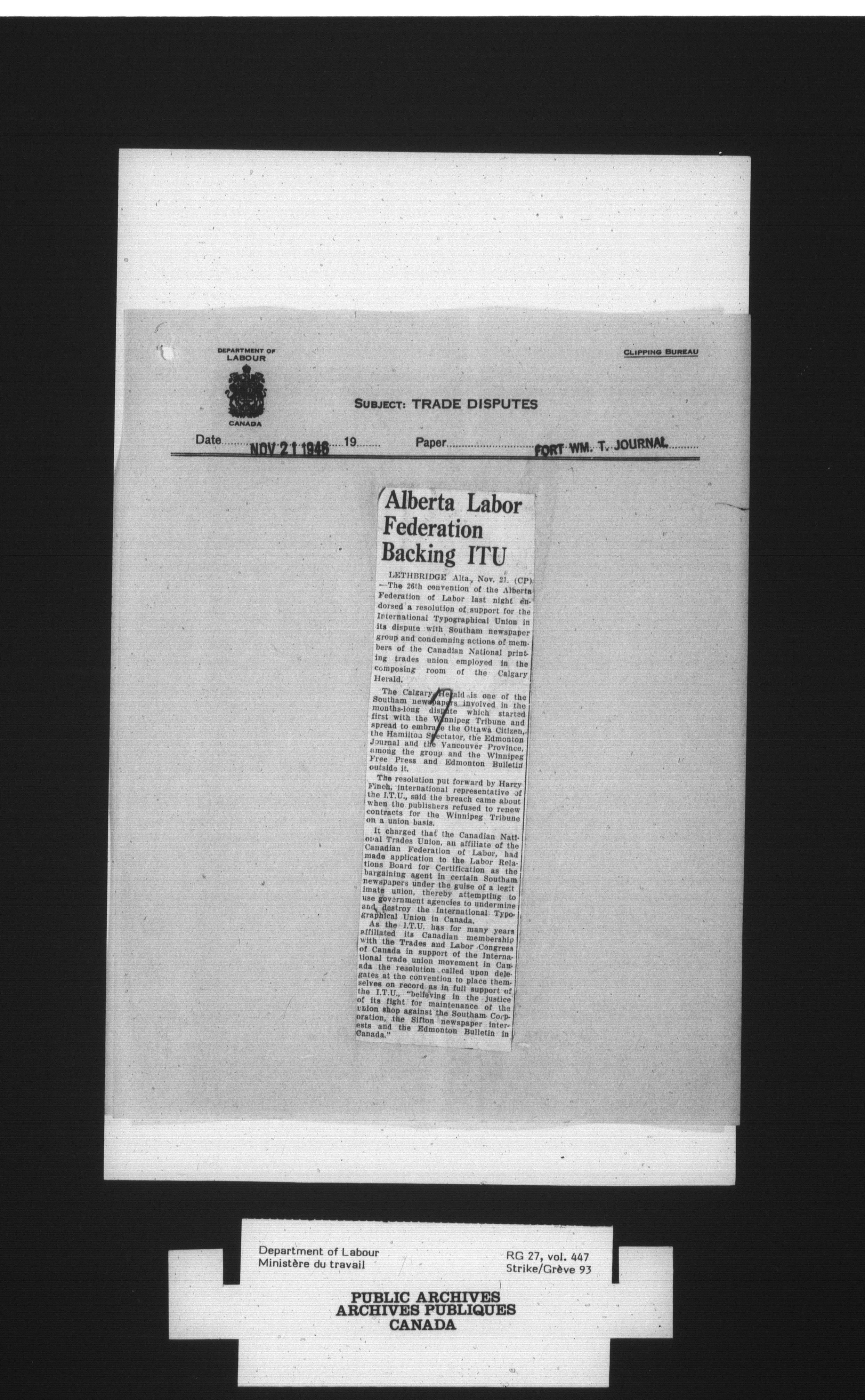 Department of Labour, Economics and Research Branch : Strikes and lockout files - 4079