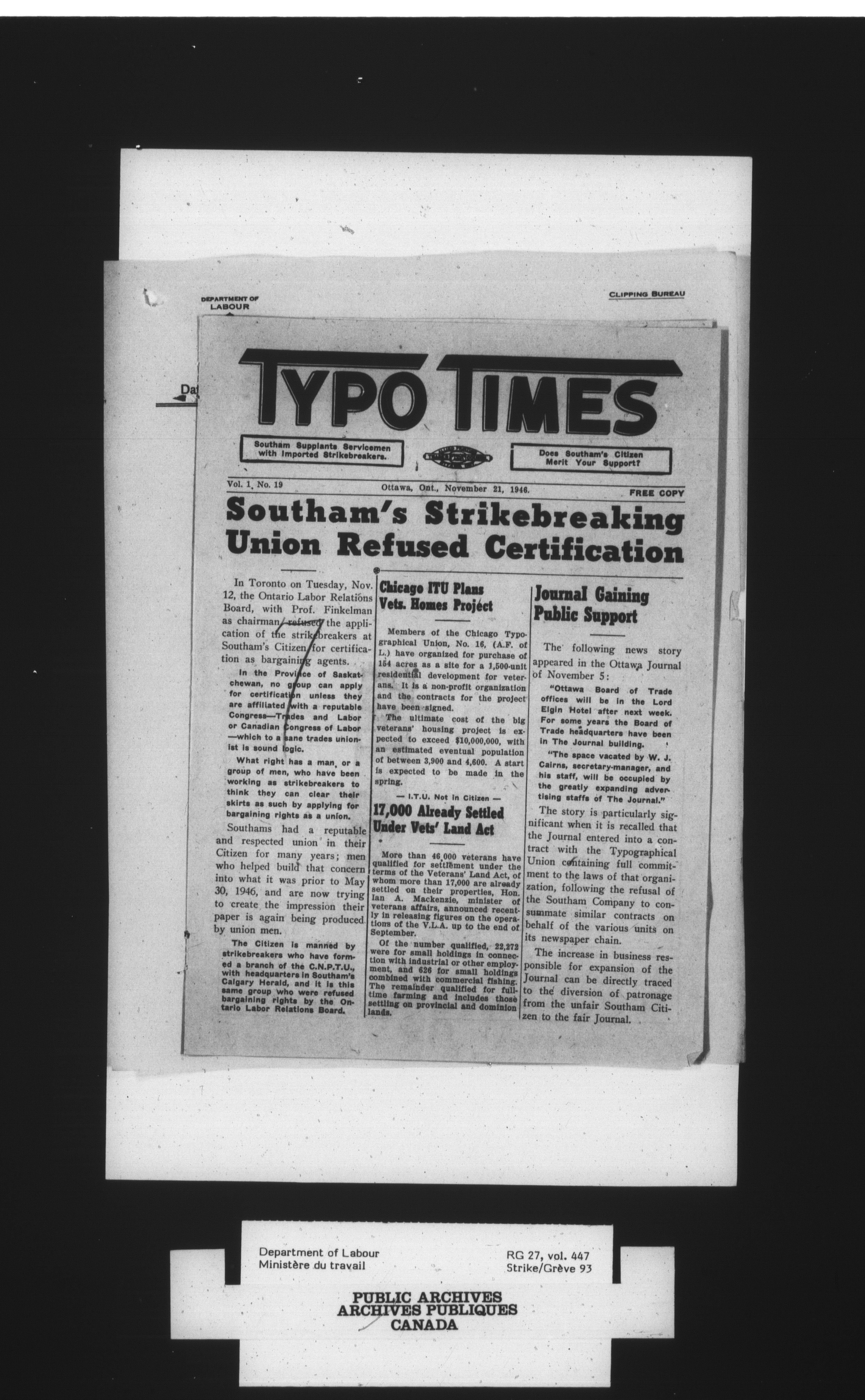 Department of Labour, Economics and Research Branch : Strikes and lockout files - 4079
