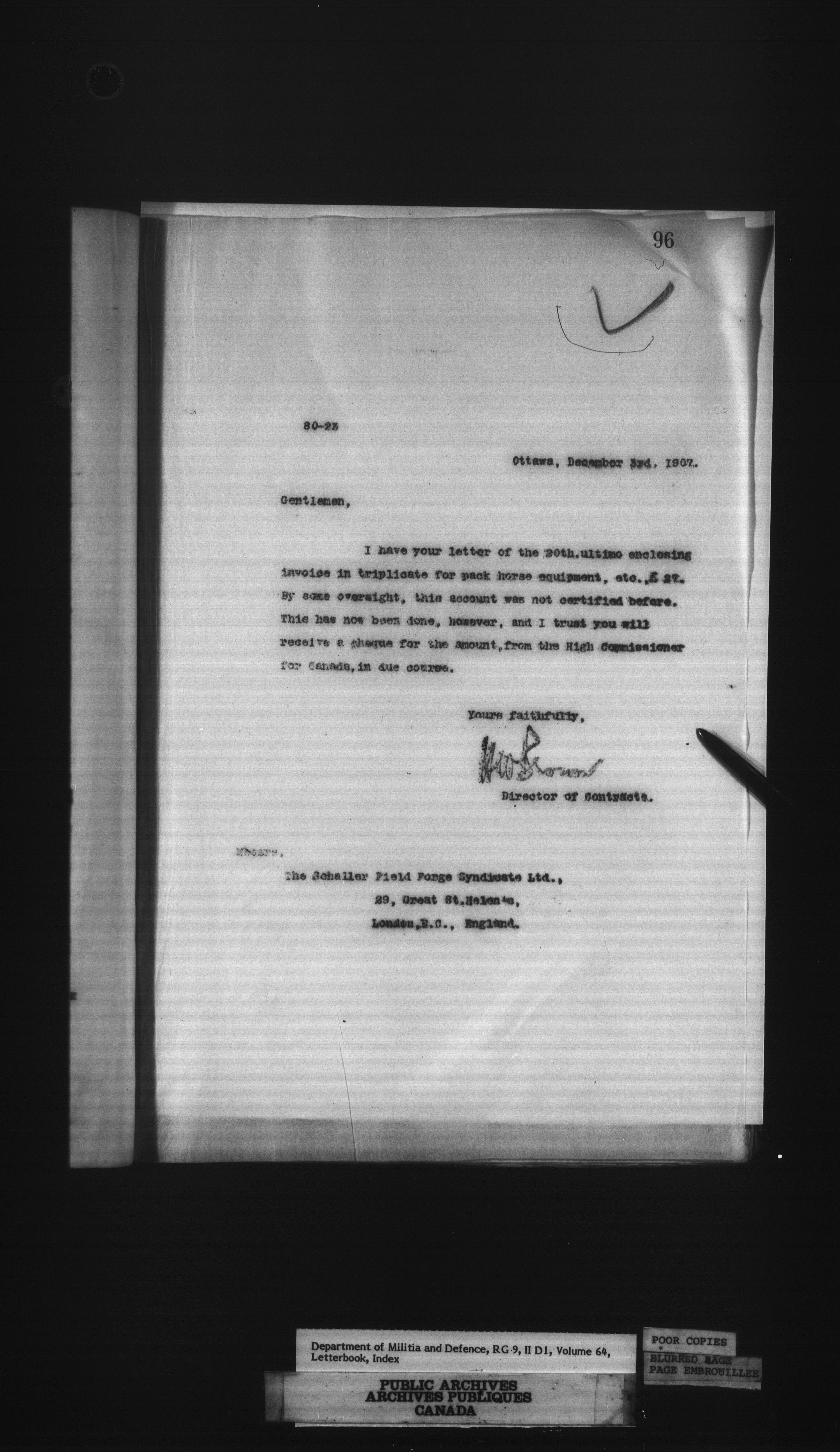 Department of Militia and Defence : Contracts Branch letterbooks, 1895-1912 - 408