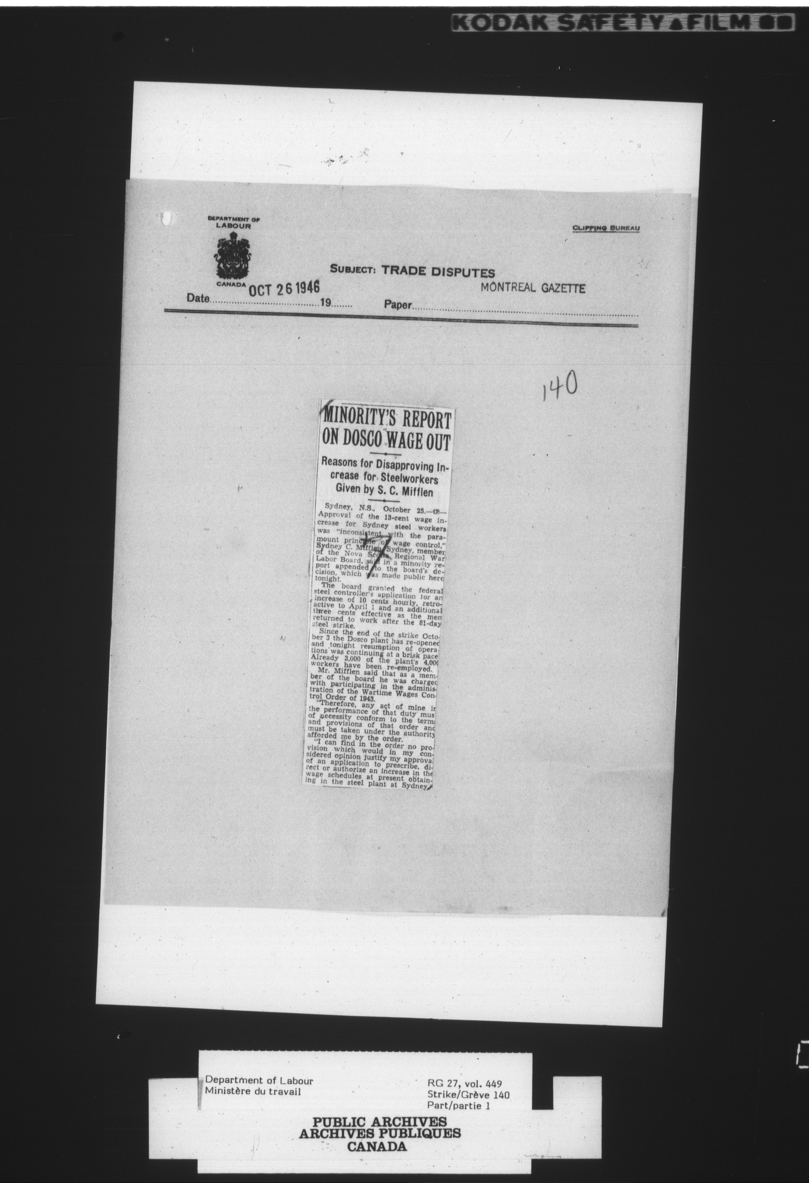 Department of Labour, Economics and Research Branch : Strikes and lockout files - 4081