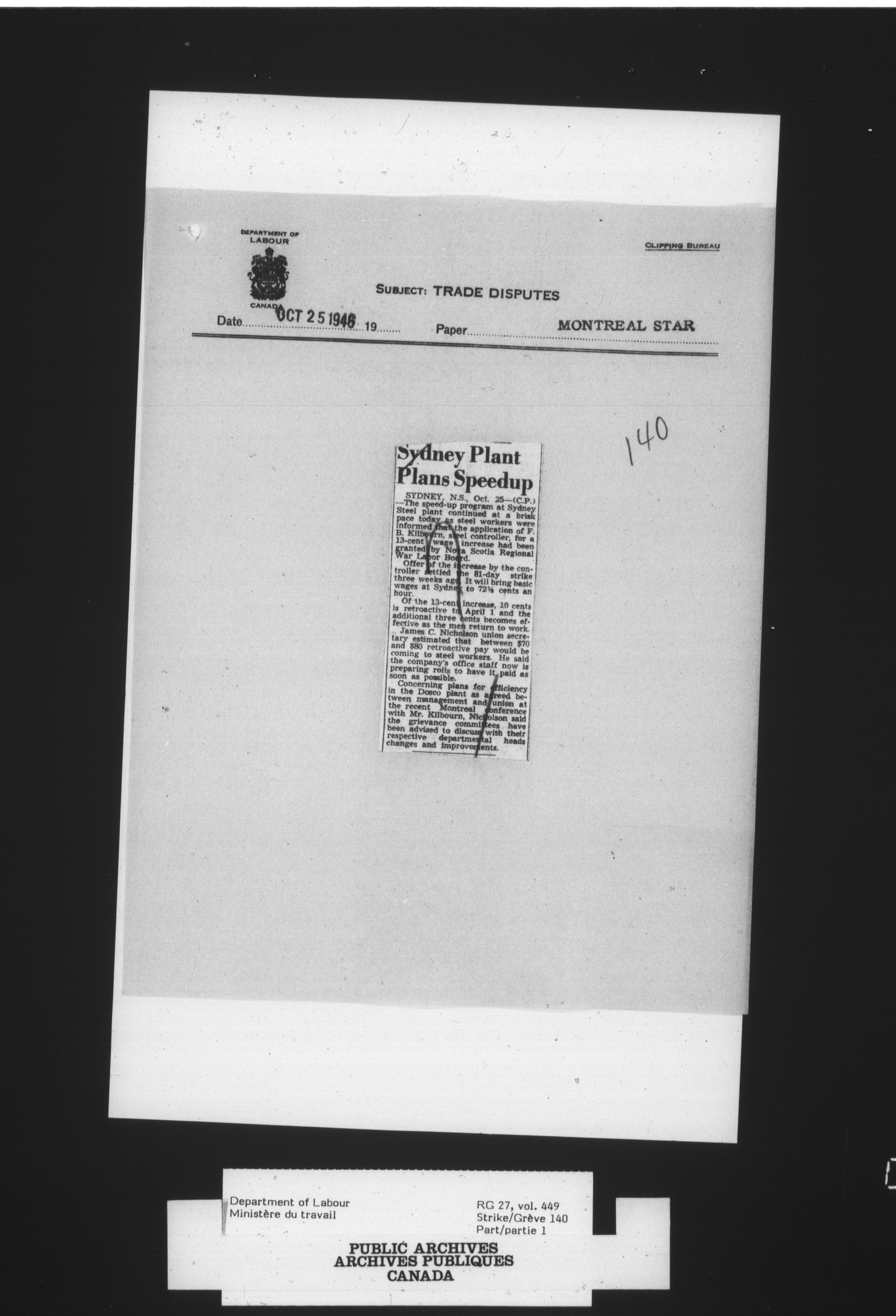 Department of Labour, Economics and Research Branch : Strikes and lockout files - 4081