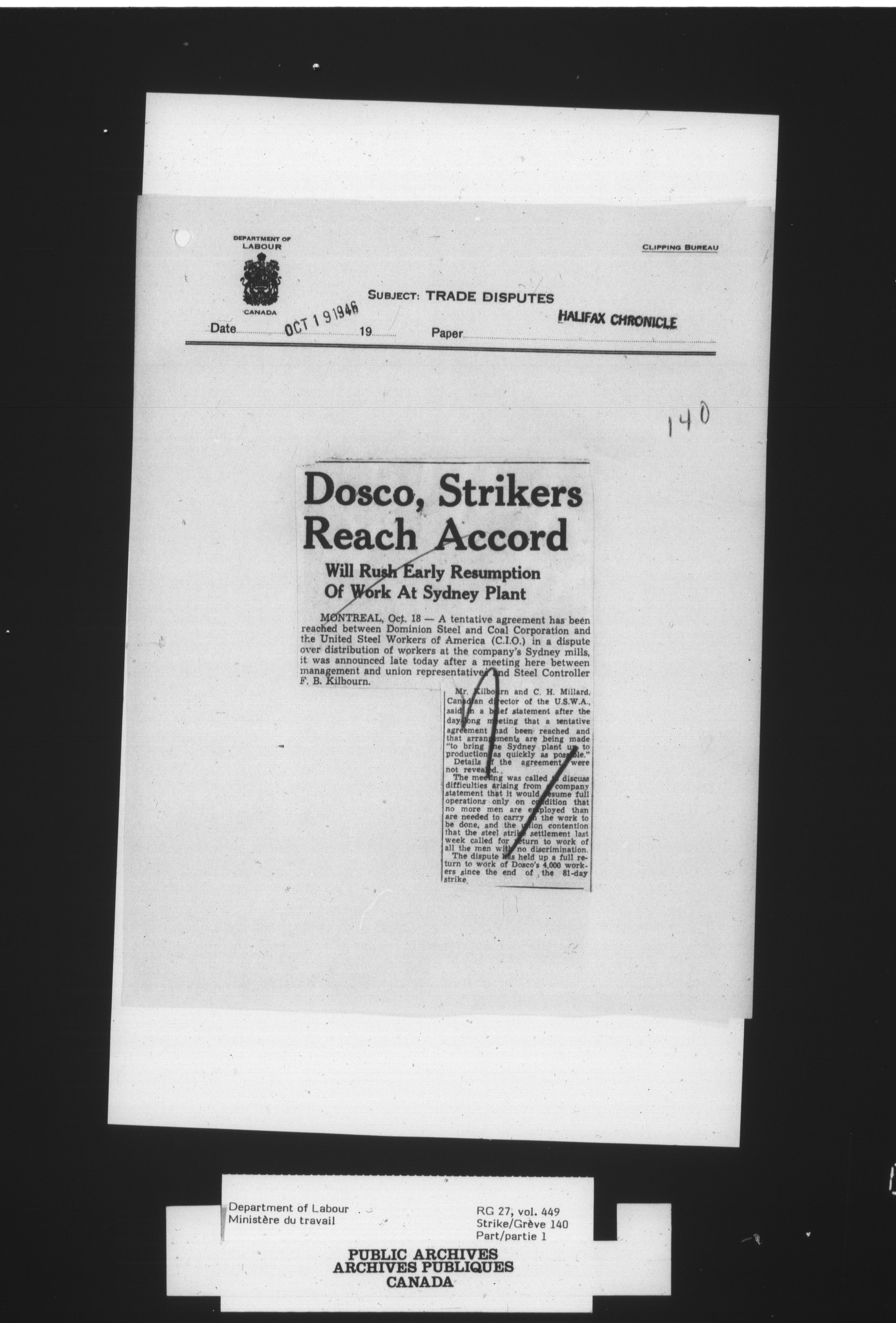 Department of Labour, Economics and Research Branch : Strikes and lockout files - 4081