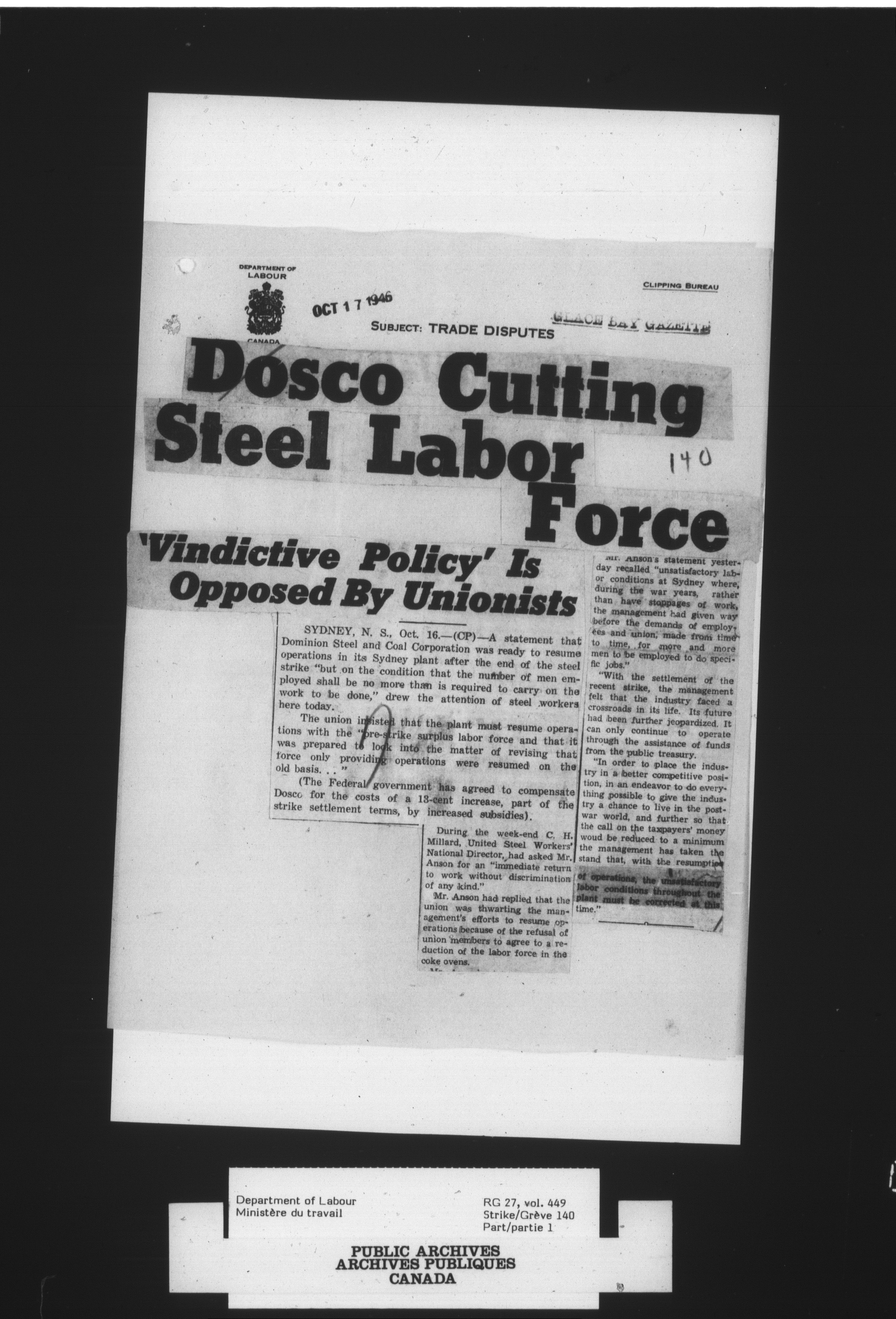 Department of Labour, Economics and Research Branch : Strikes and lockout files - 4081