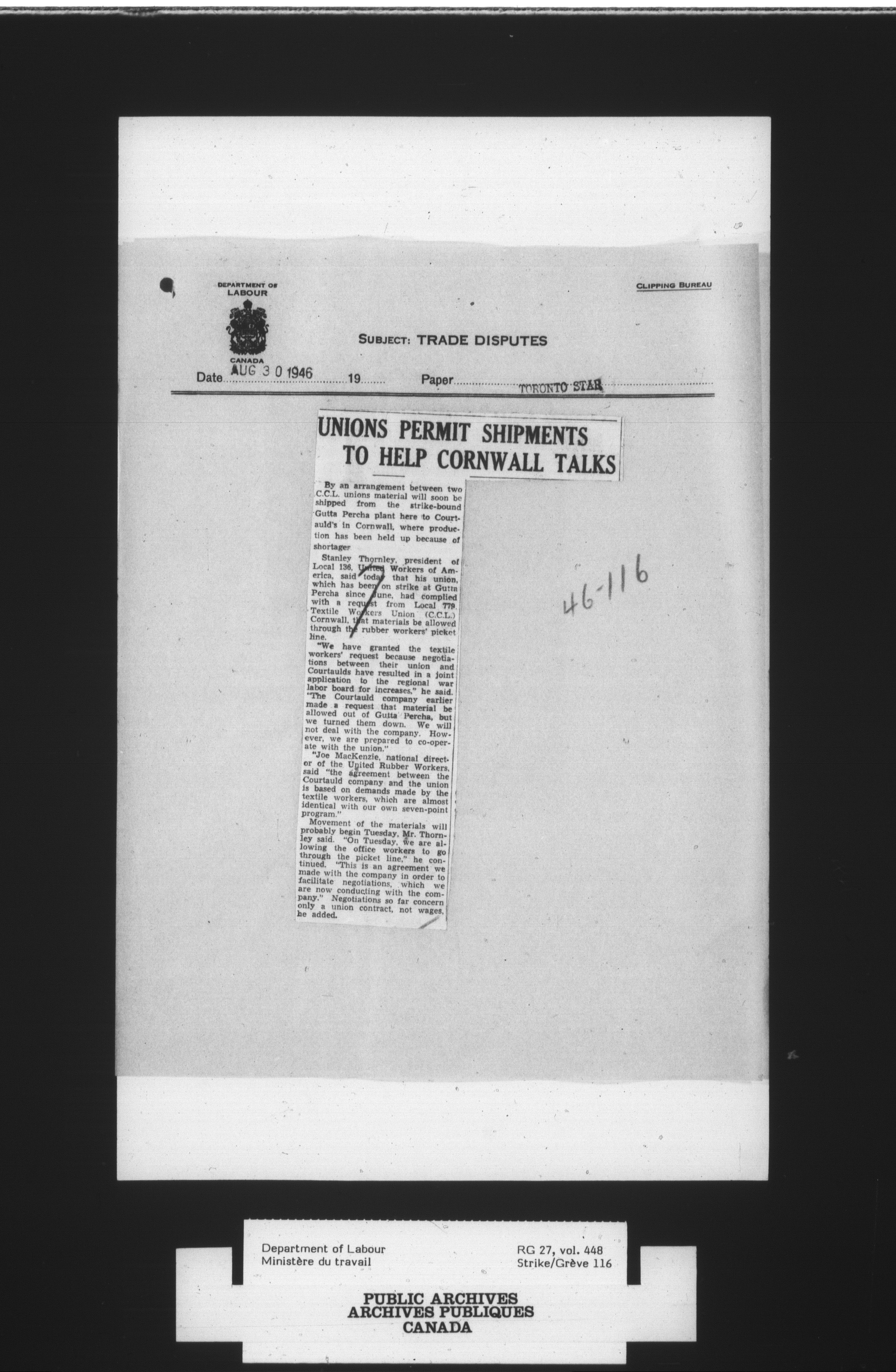 Department of Labour, Economics and Research Branch : Strikes and lockout files - 4081