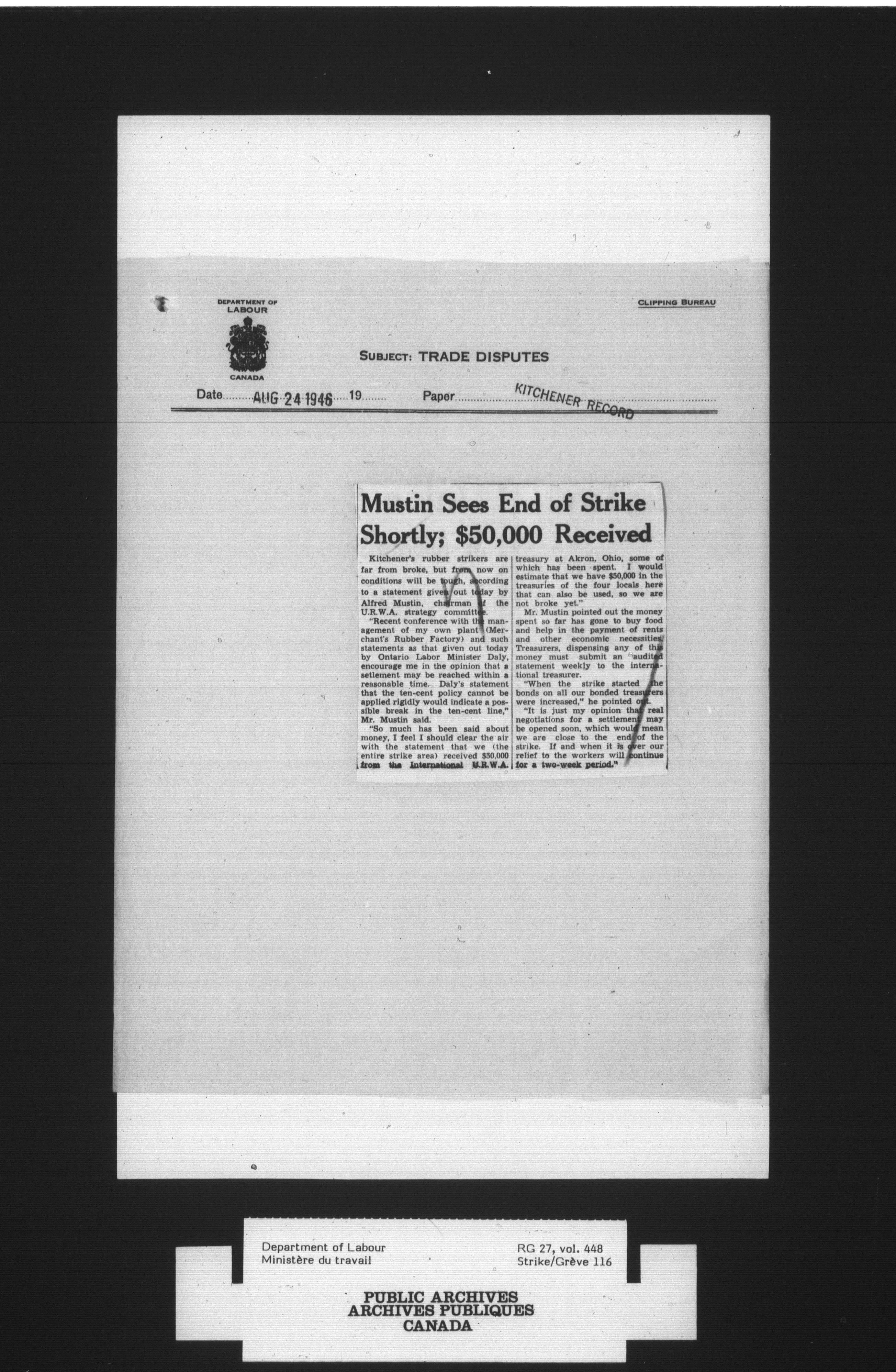 Department of Labour, Economics and Research Branch : Strikes and lockout files : T-4081