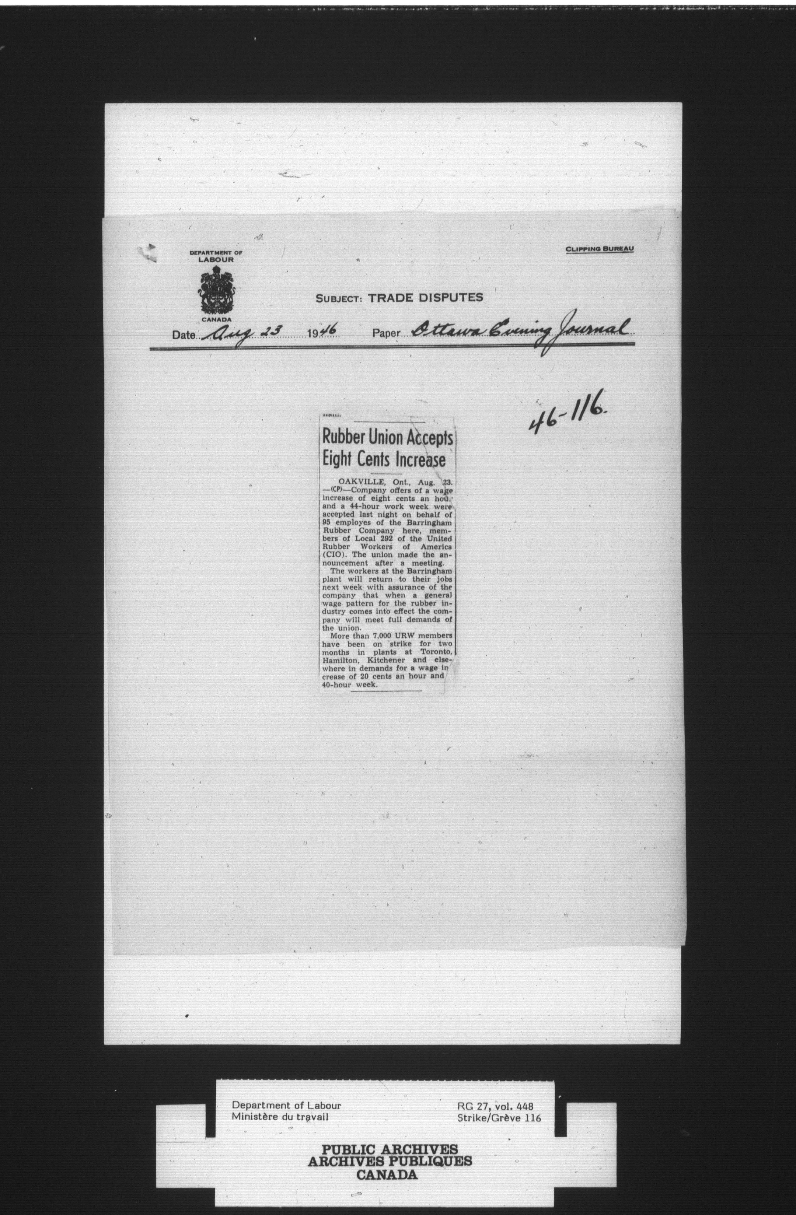 Department of Labour, Economics and Research Branch : Strikes and lockout files - 4081
