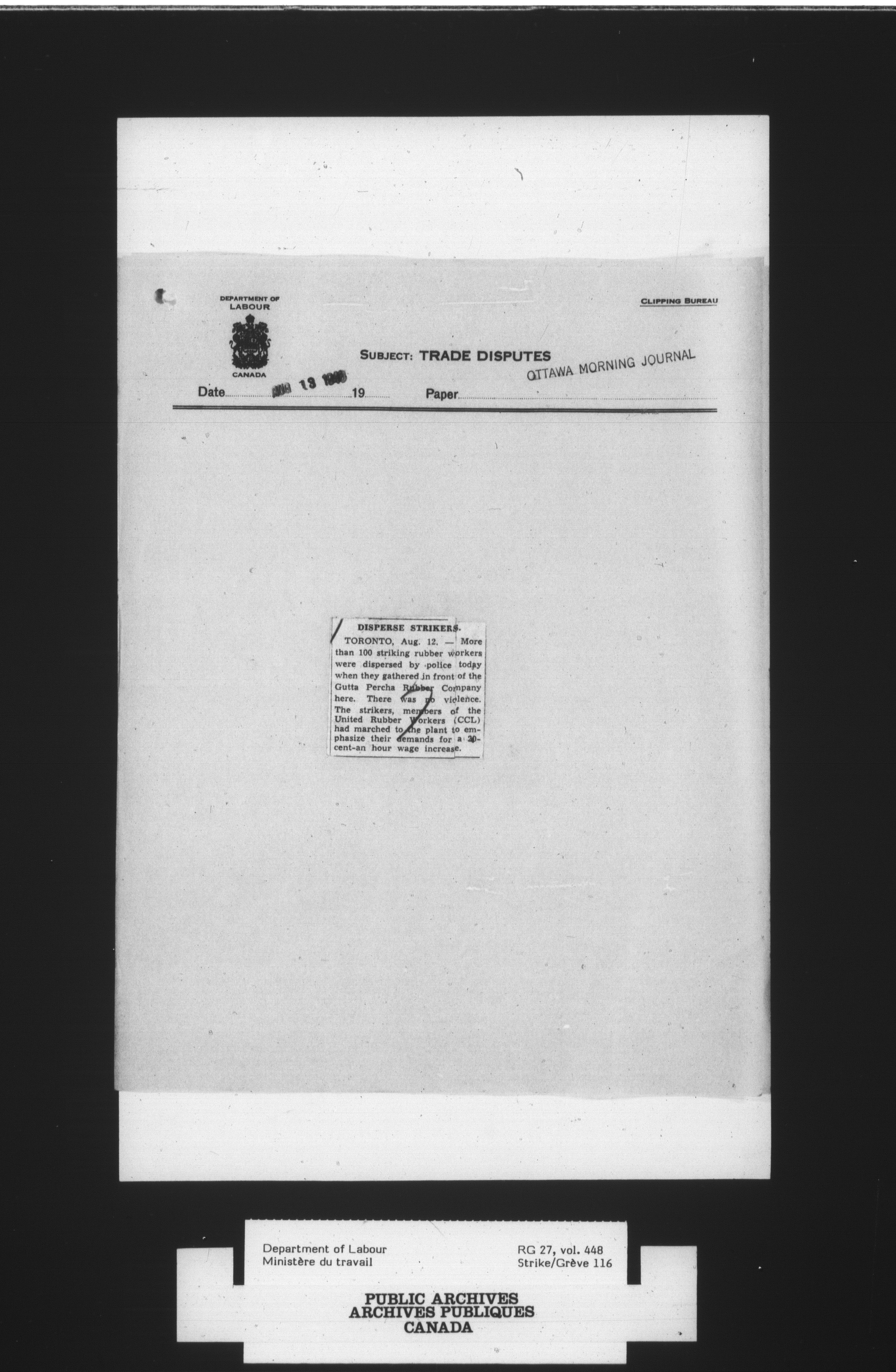Department of Labour, Economics and Research Branch : Strikes and lockout files - 4081
