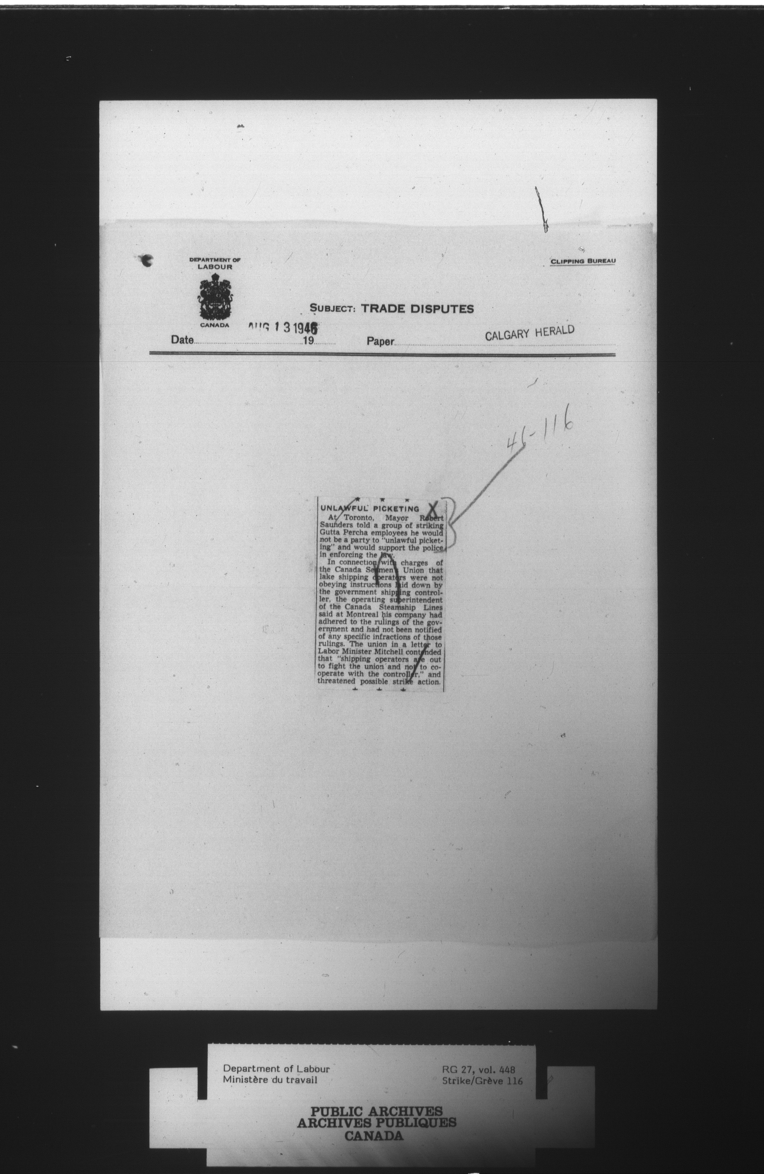 Department of Labour, Economics and Research Branch : Strikes and lockout files - 4081