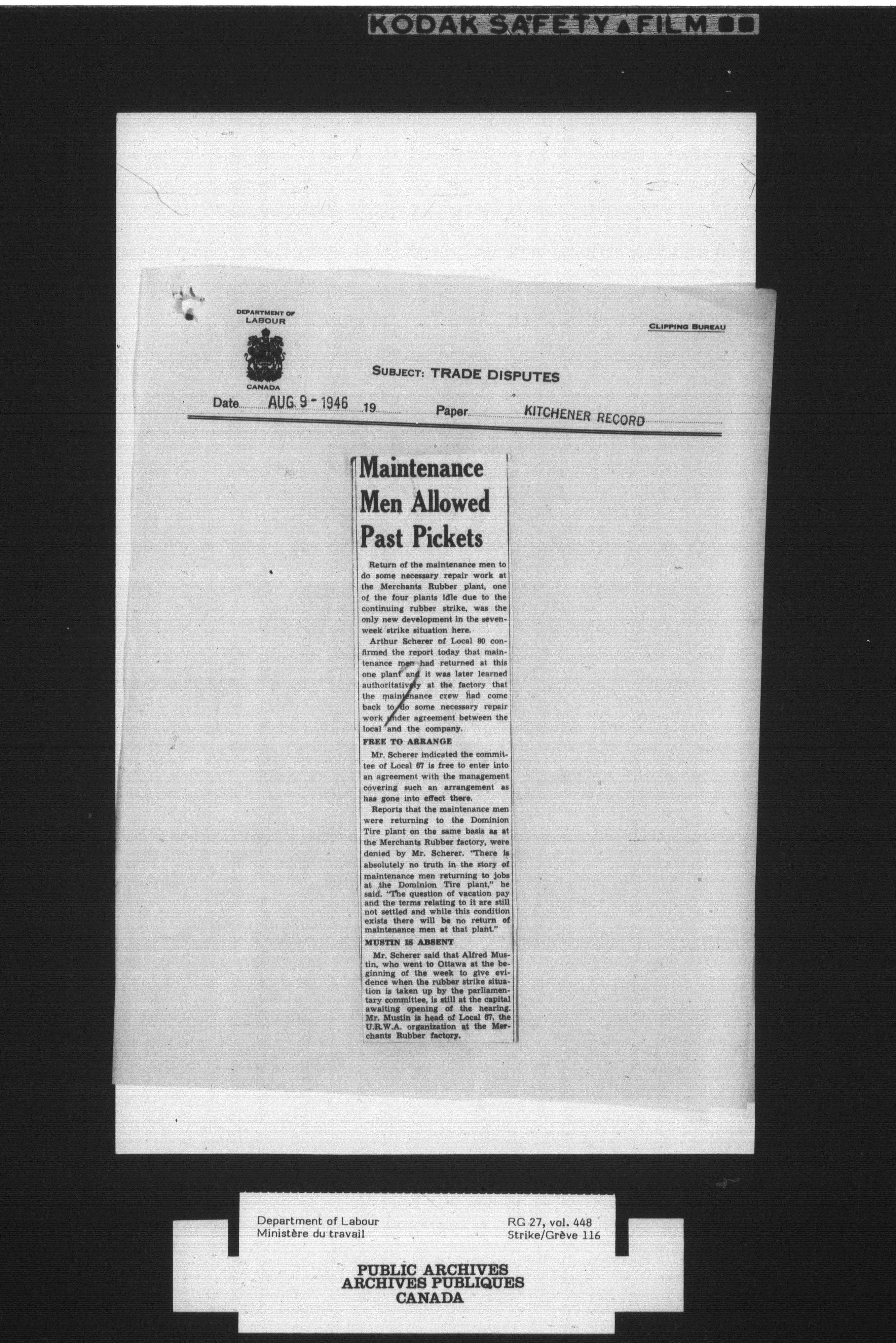 Department of Labour, Economics and Research Branch : Strikes and lockout files - 4081