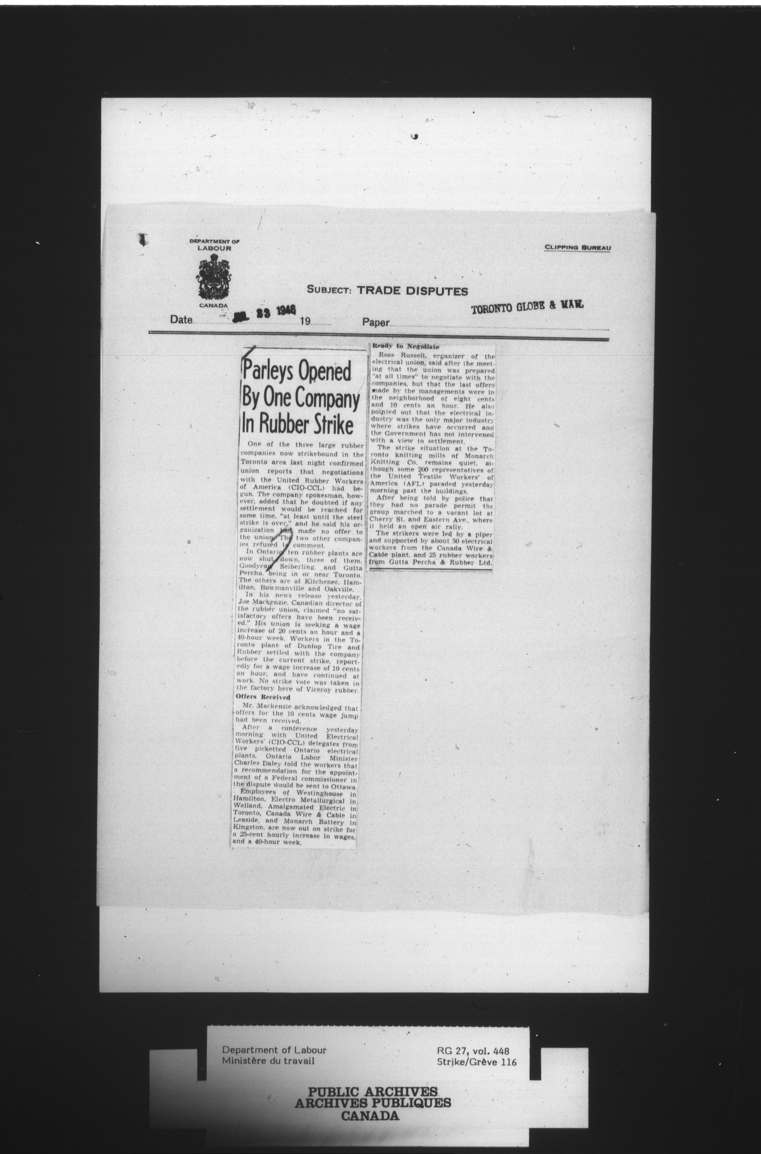 Department of Labour, Economics and Research Branch : Strikes and lockout files - 4081