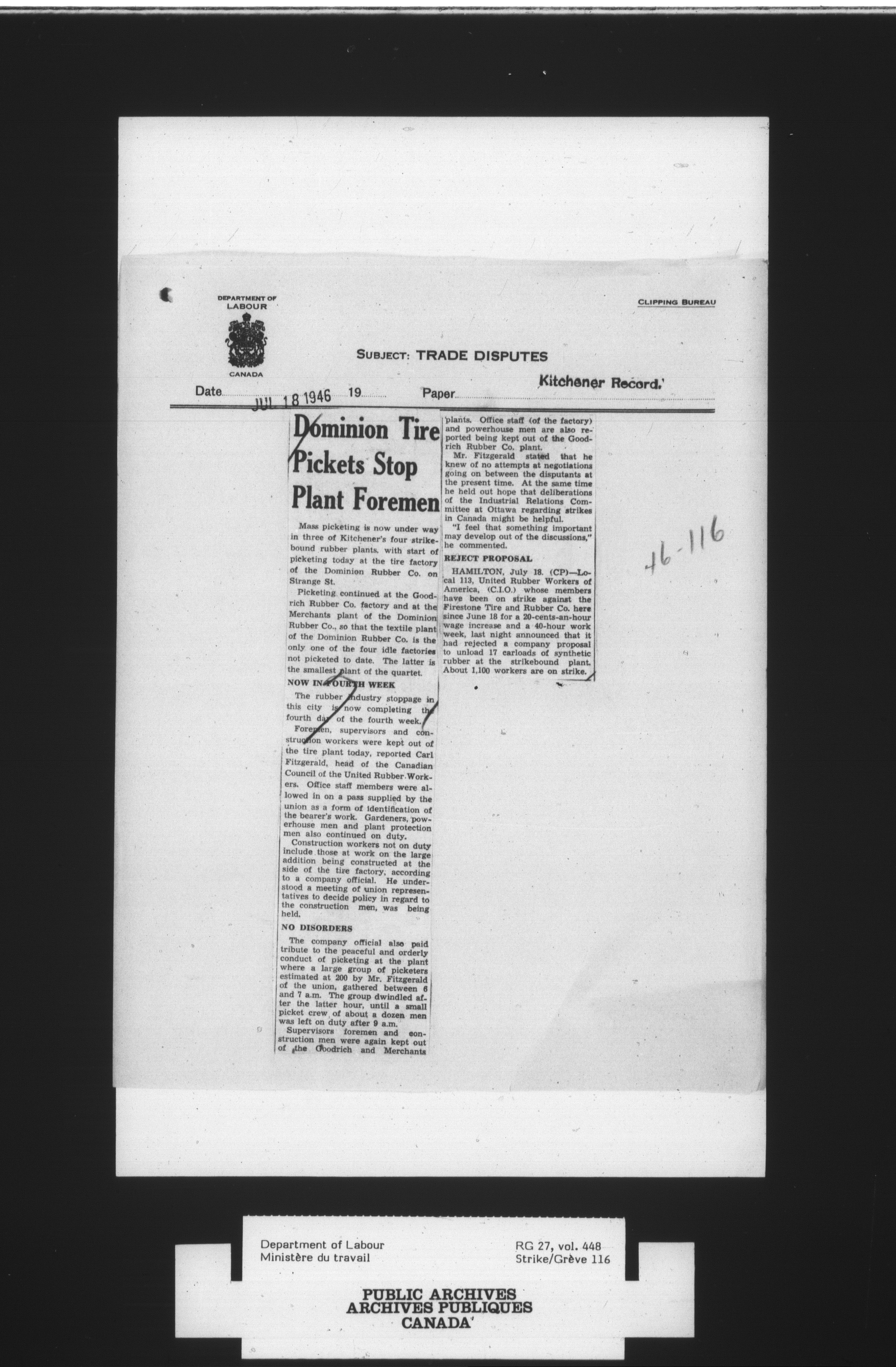 Department of Labour, Economics and Research Branch : Strikes and lockout files - 4081