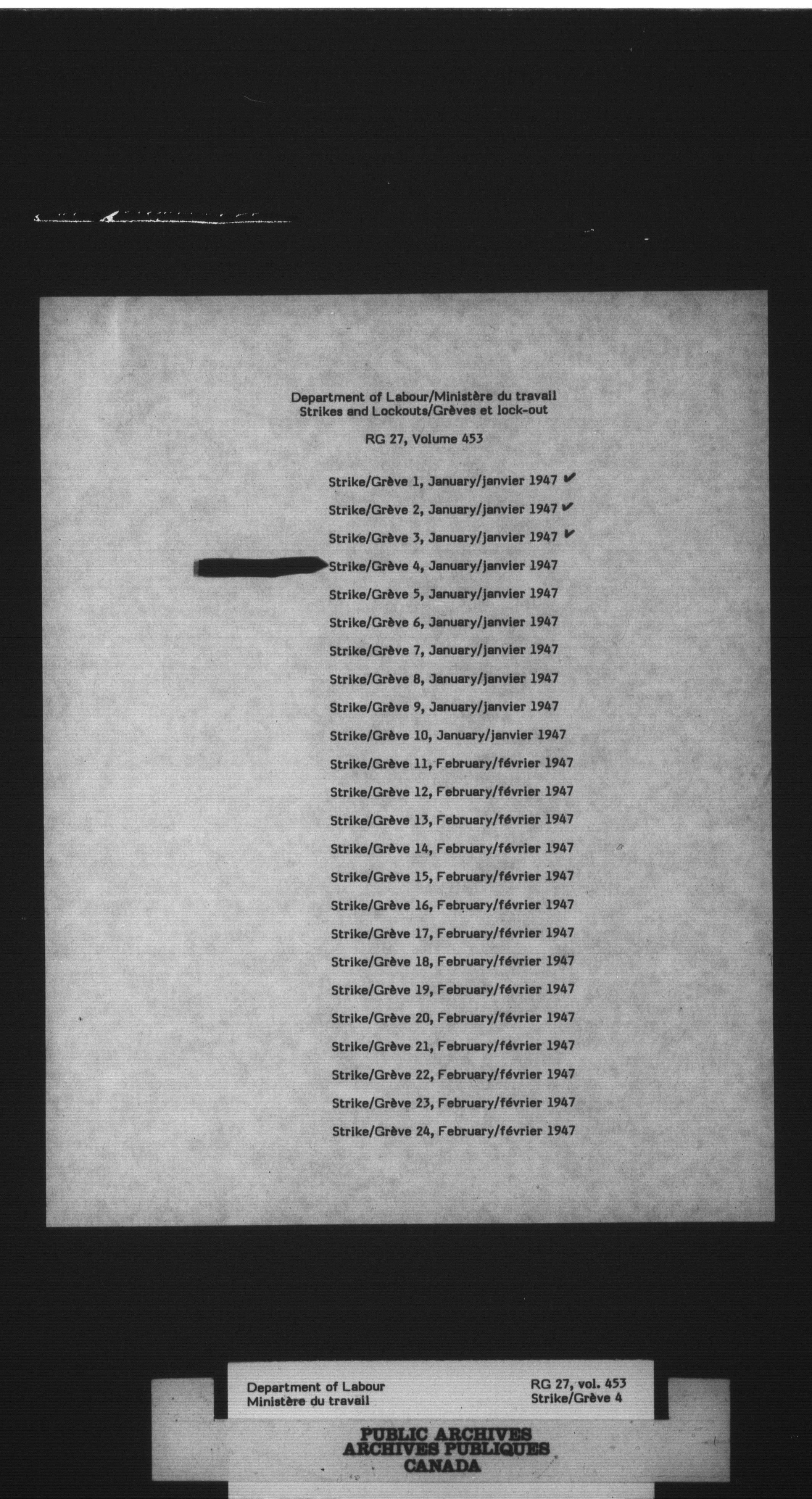 Department of Labour, Economics and Research Branch : Strikes and lockout files - 4084