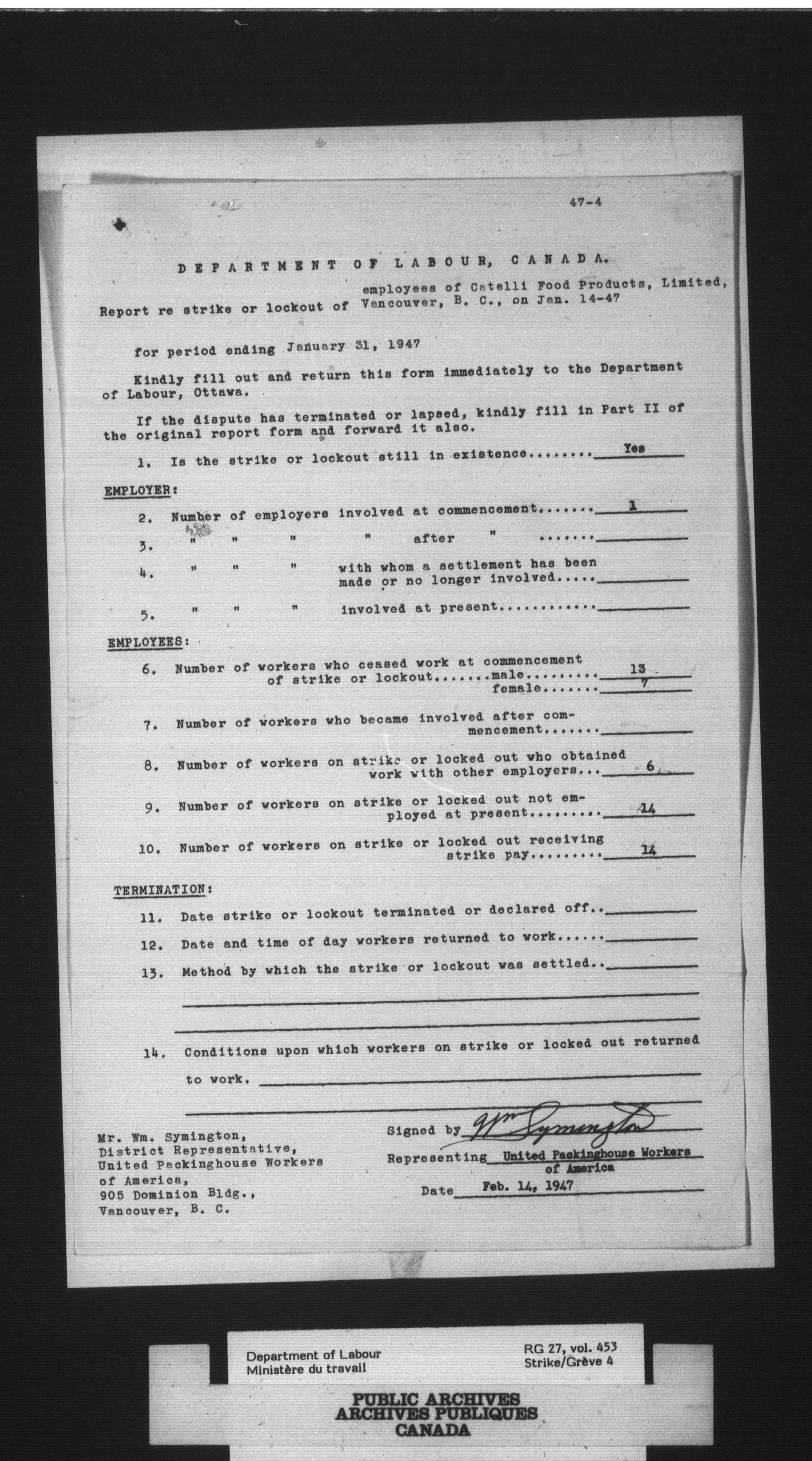 Department of Labour, Economics and Research Branch : Strikes and lockout files - 4084