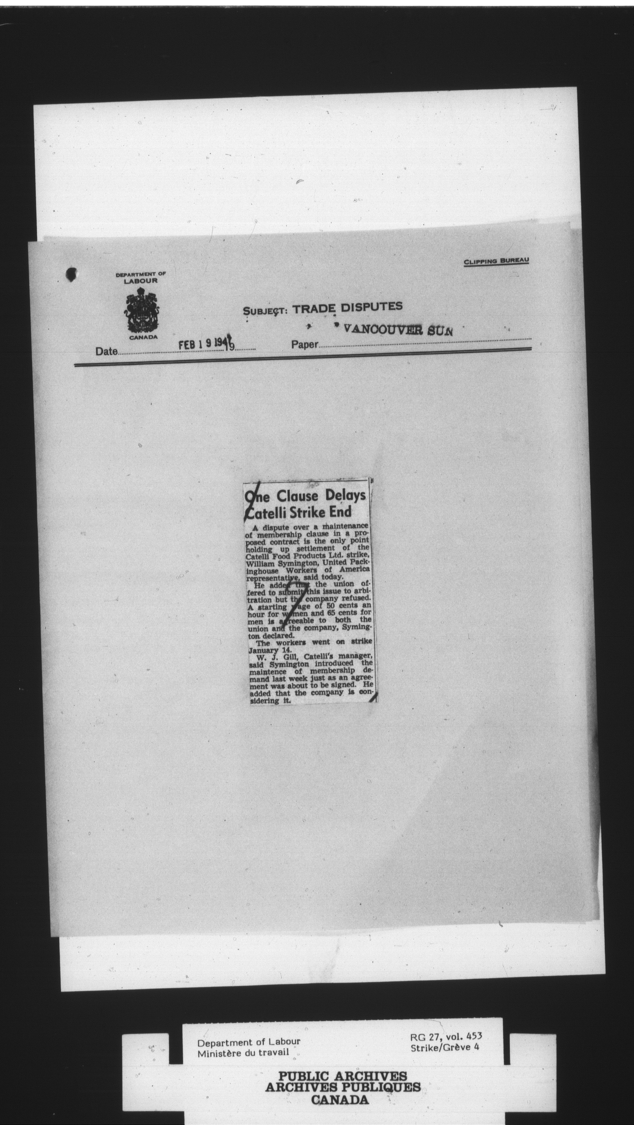 Department of Labour, Economics and Research Branch : Strikes and lockout files - 4084