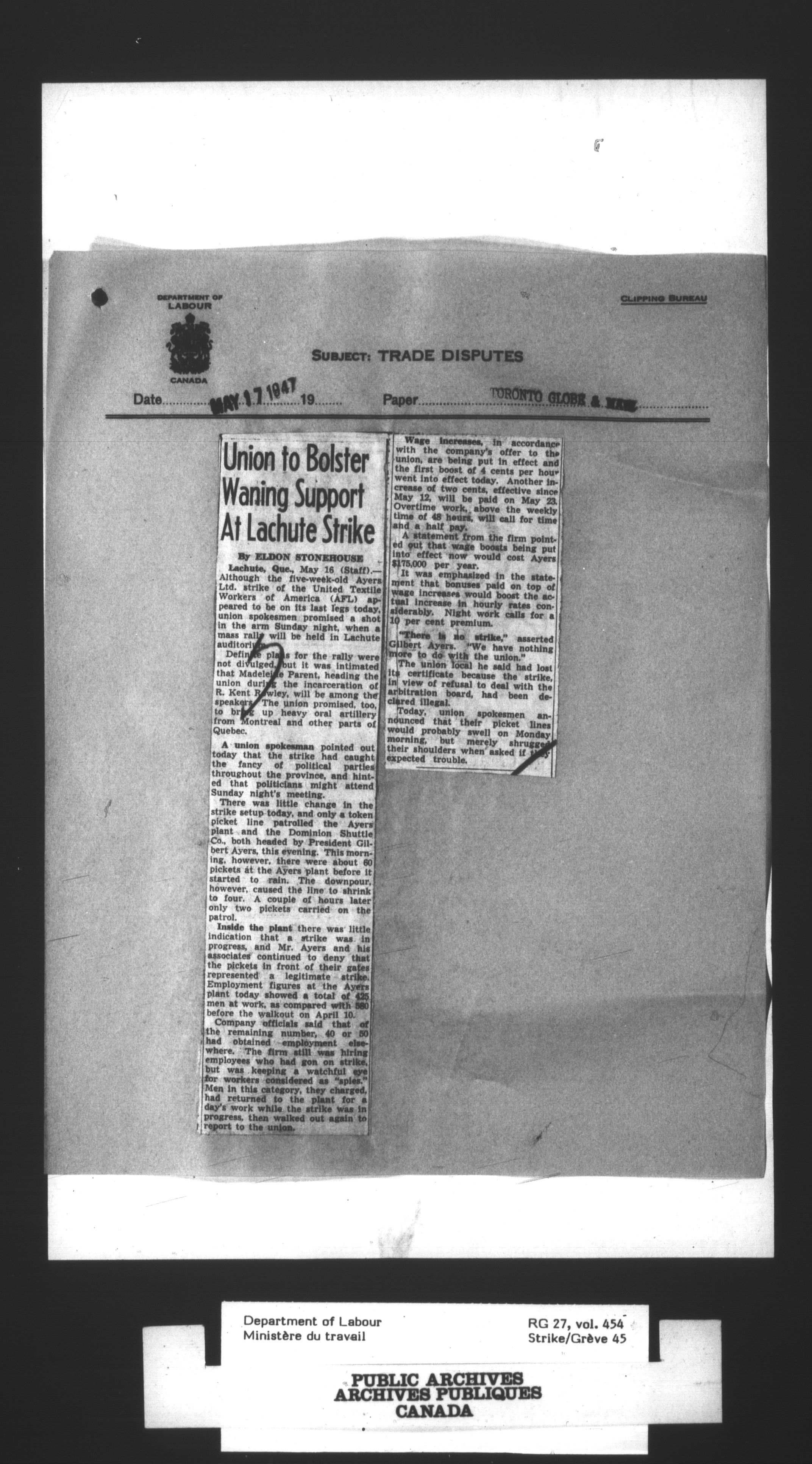 Department of Labour, Economics and Research Branch : Strikes and lockout files - 4085